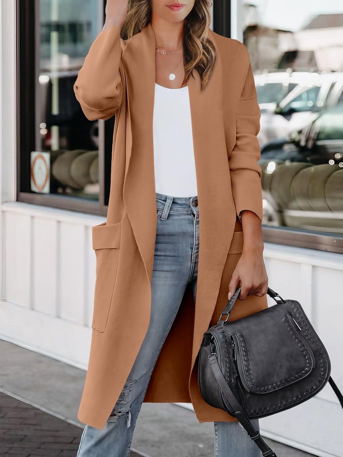 imageANRABESS Womens Long Cardigan Sweater 2025 Fall Fashion Casual Oversized Knit Open Front Coatigan Jacket Coat OutfitsPeach Khaki