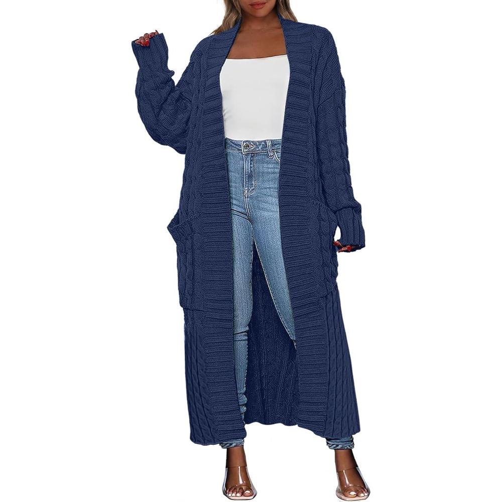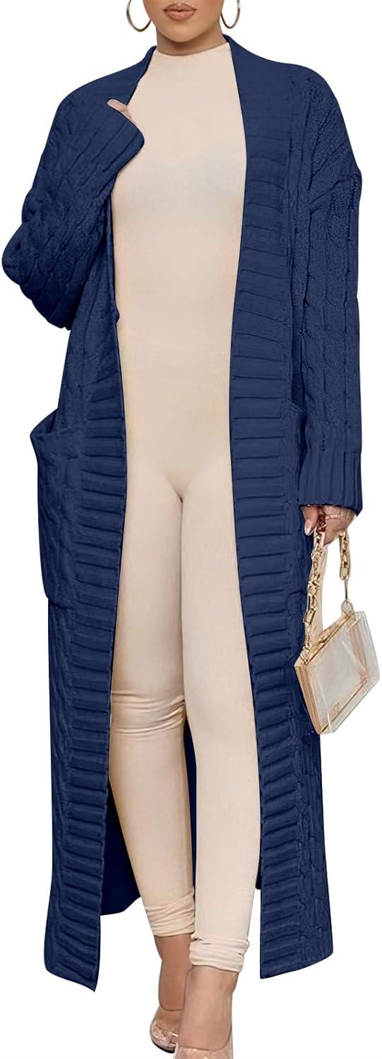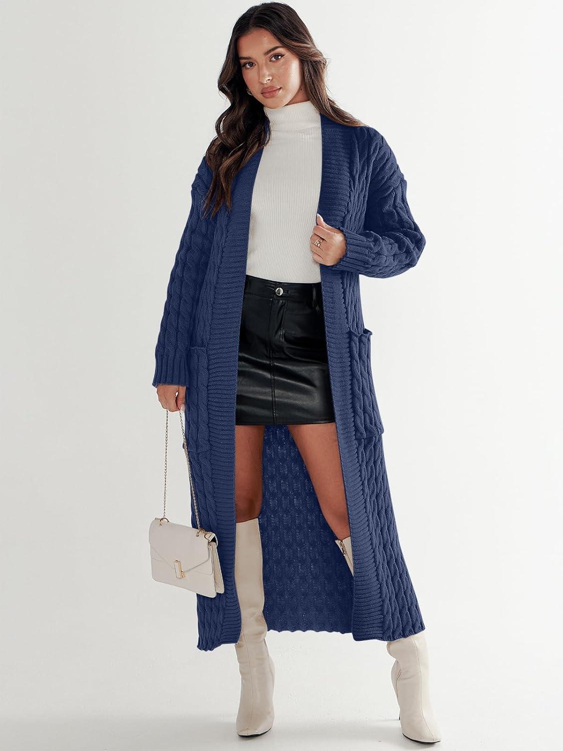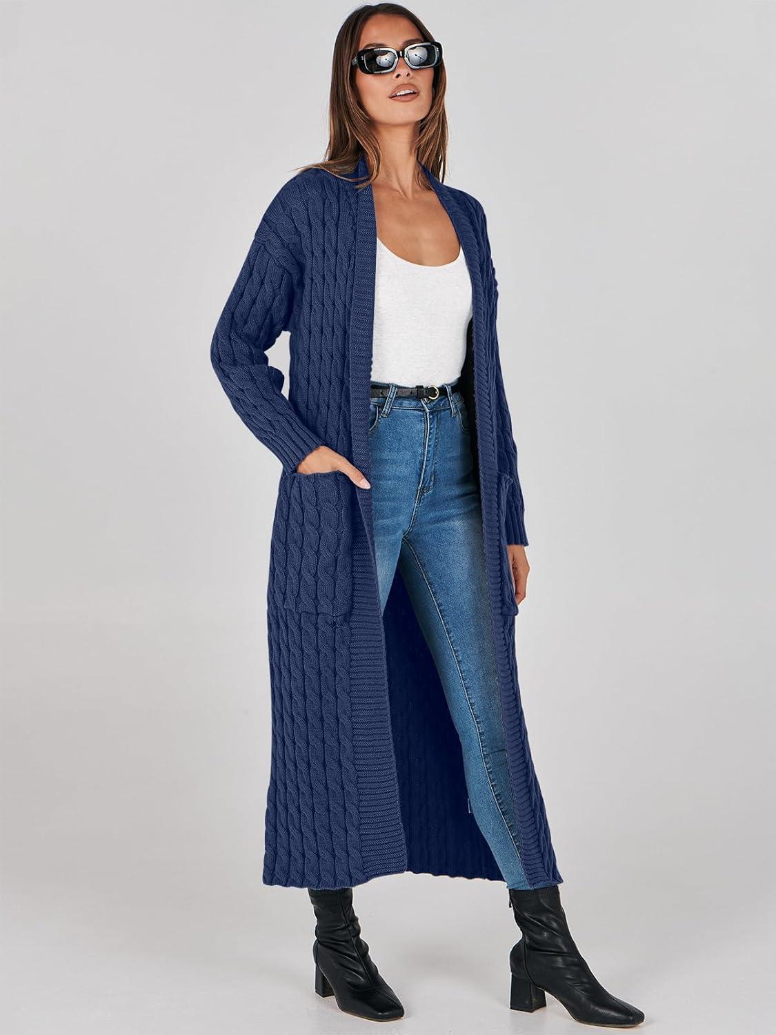 ANRABESS Womens Long Cardigan Sweater 2025 Oversized Coat Long Sleeve Open Front Knit Maxi Outwear Fall Trendy Jacket Clothes(Navy Blue)