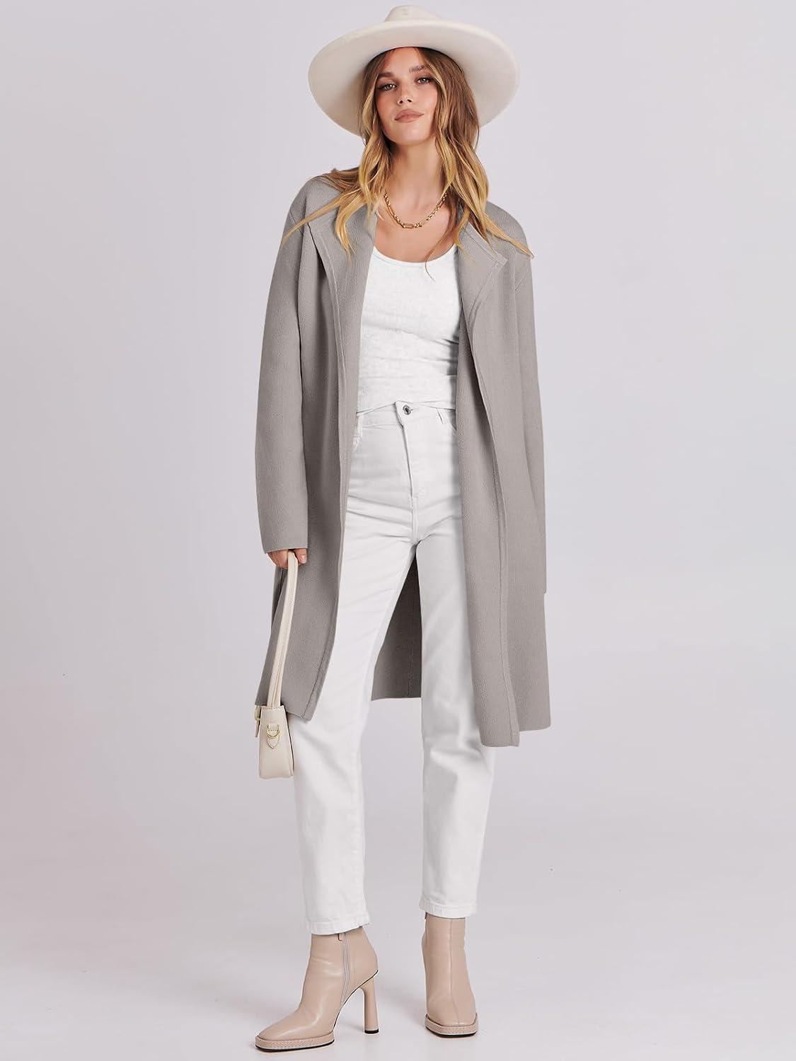 ANRABESS Women's Long Cardigans Sweater 2025 Fall Dressy Casual Lapel Knit Warm Trench Coatigan Oversized Blazer Jacket Coat(Grey Khaki)