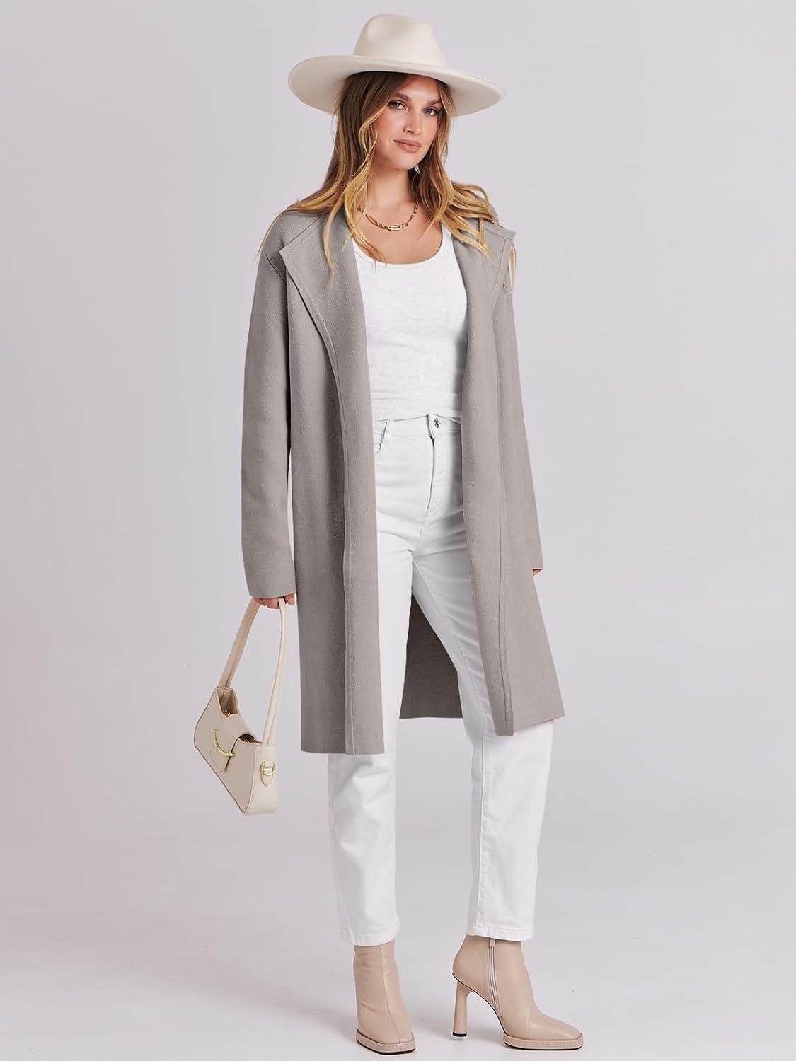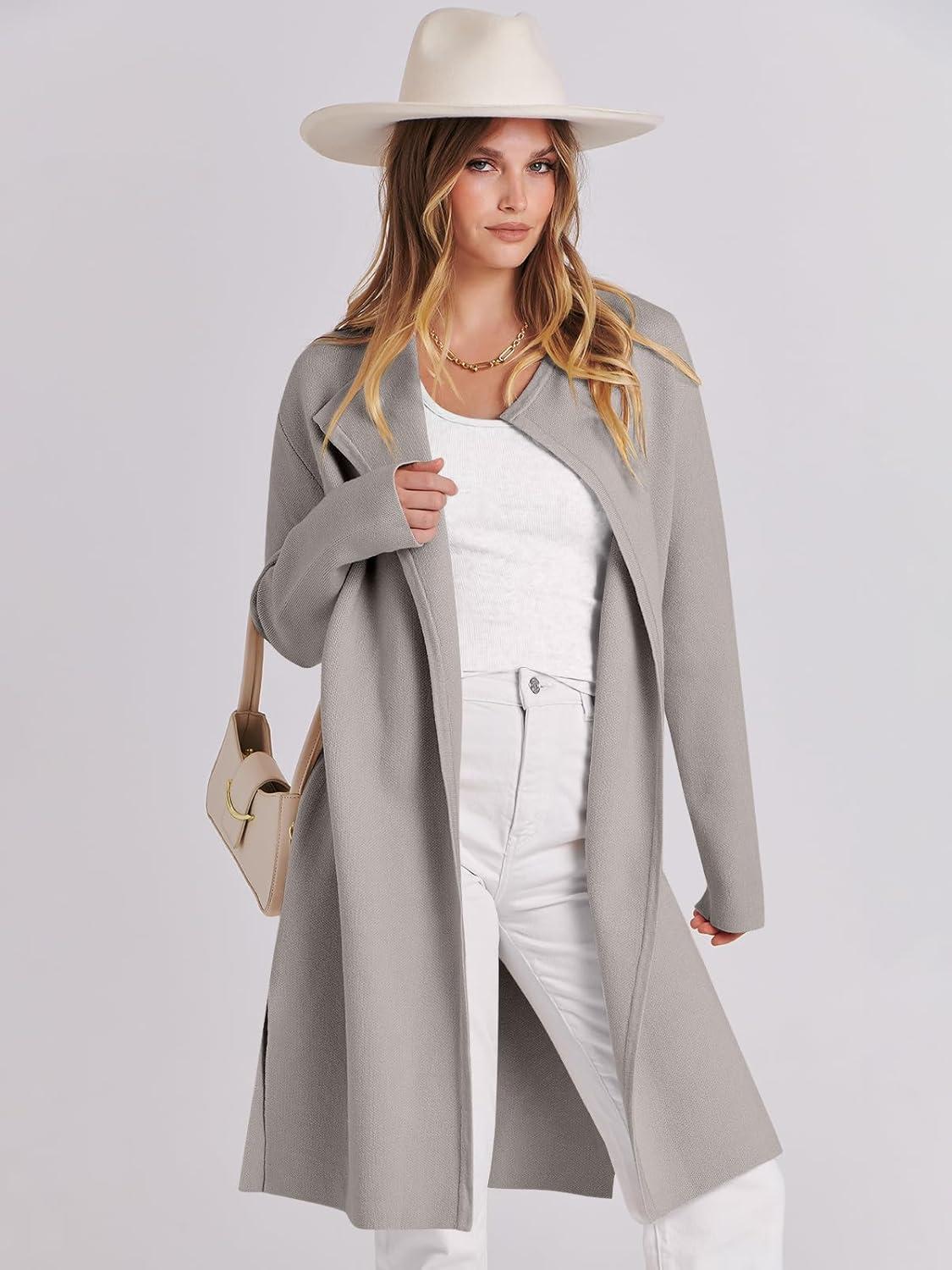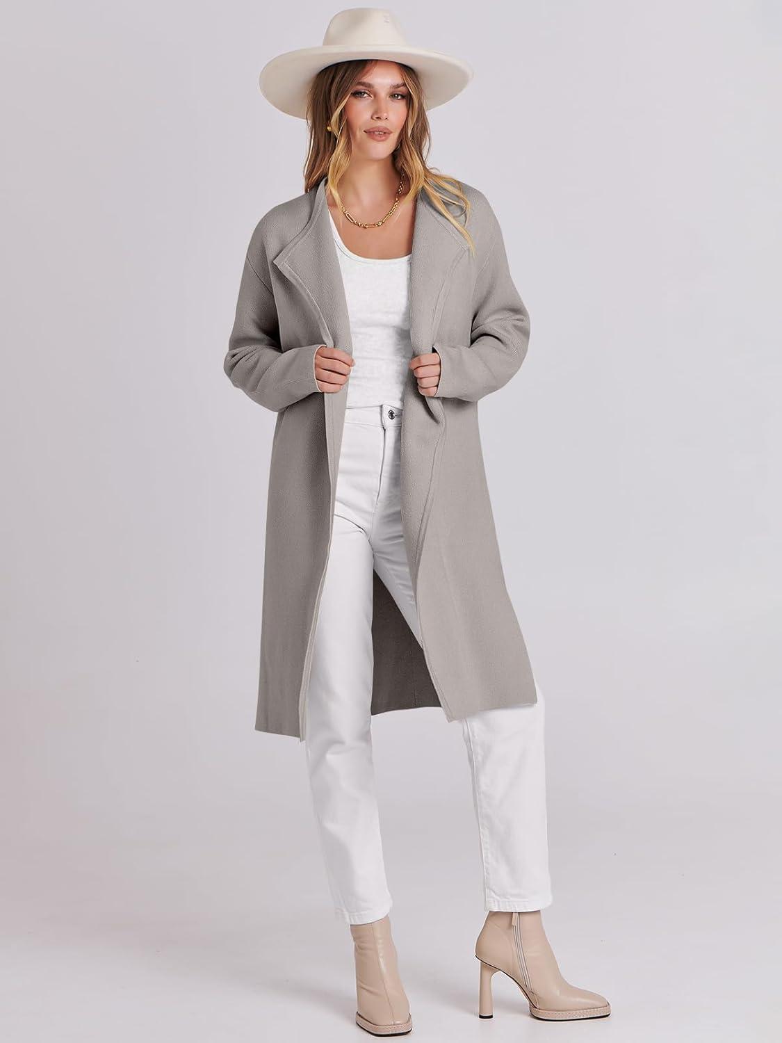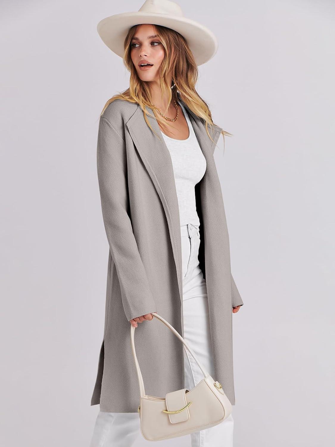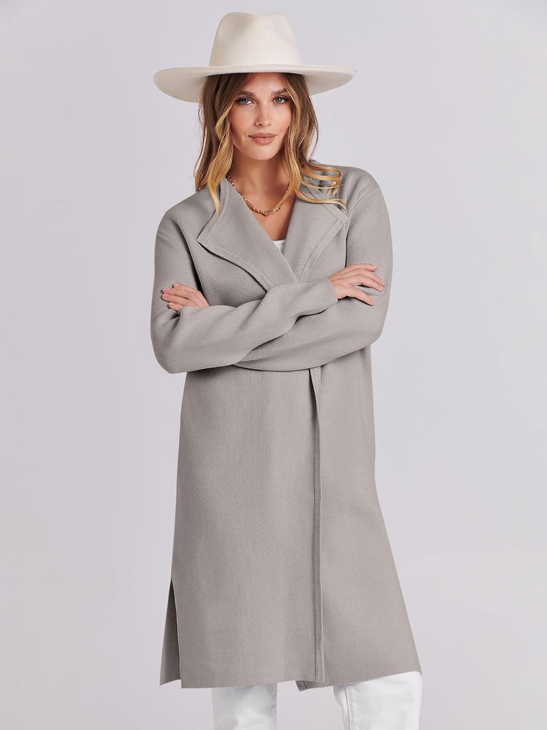 ANRABESS Women’s Long Cardigans Sweater 2025 Fall Dressy Casual Lapel Knit Warm Trench Coatigan Oversized Blazer Jacket Coat(Grey Khaki)