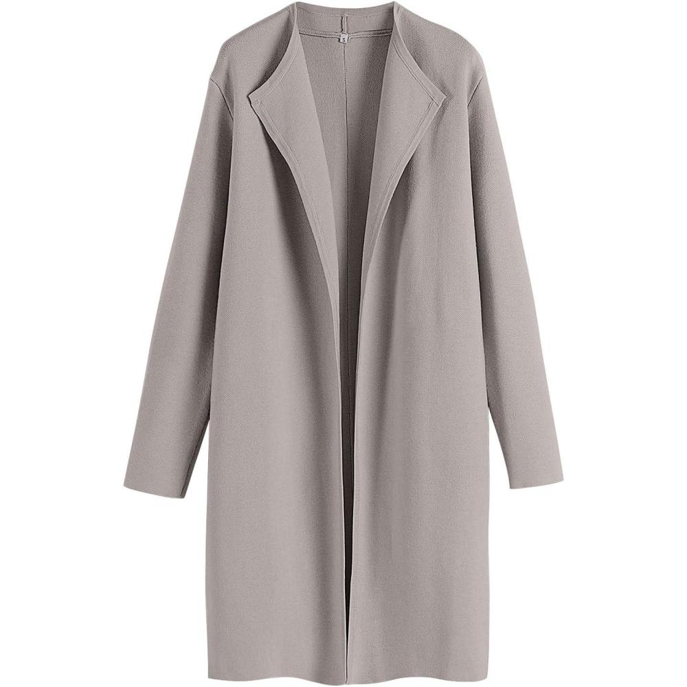 imageANRABESS Womens Long Cardigans Sweater 2025 Fall Dressy Casual Lapel Knit Warm Trench Coatigan Oversized Blazer Jacket CoatGrey Khaki