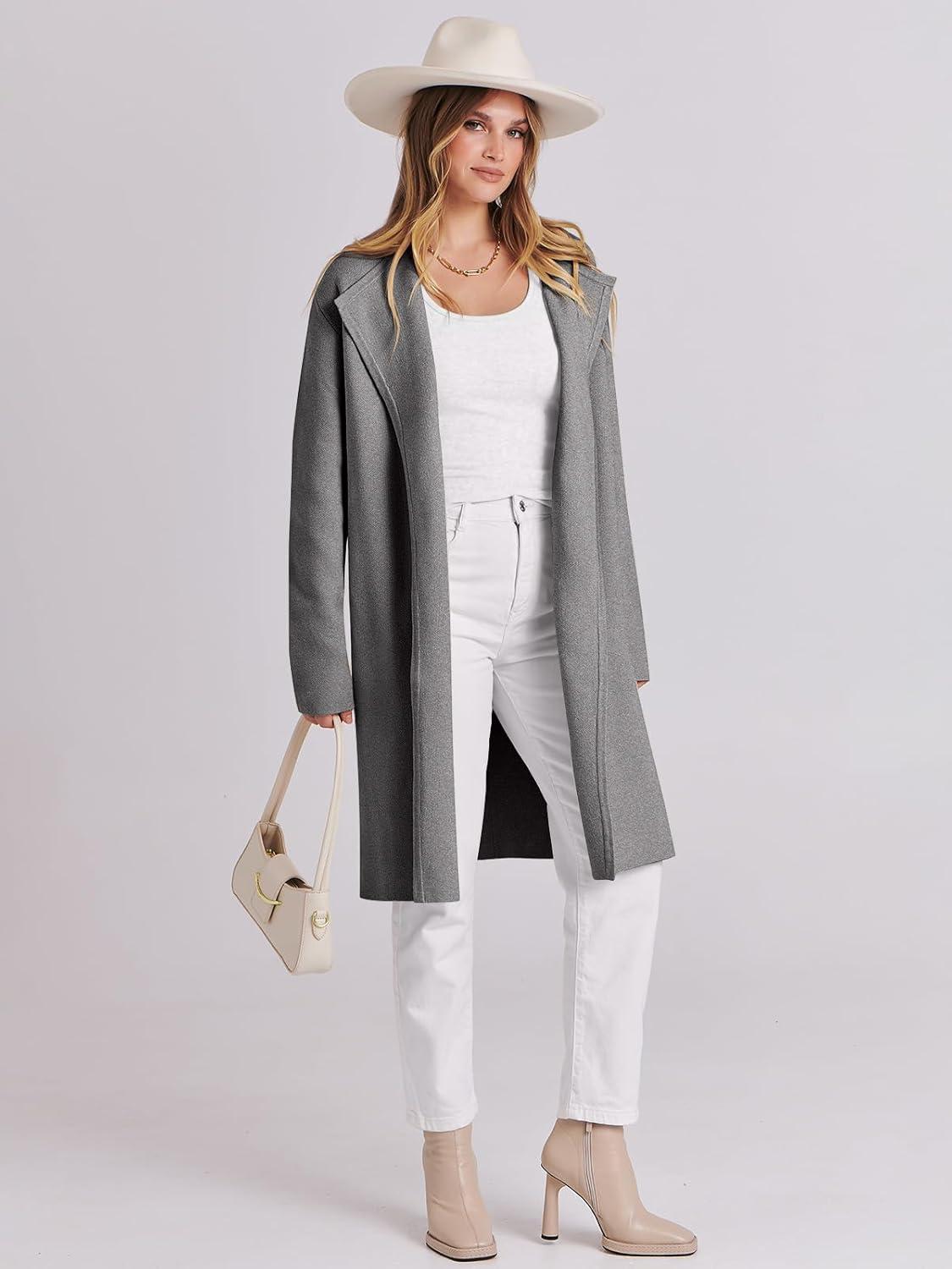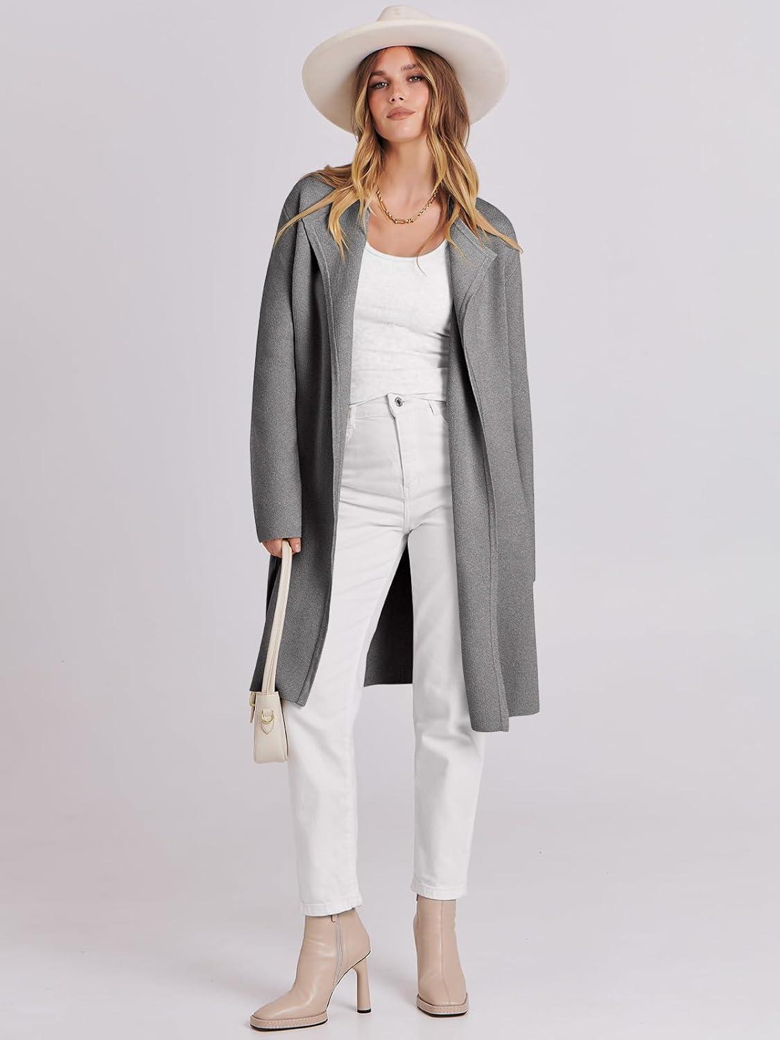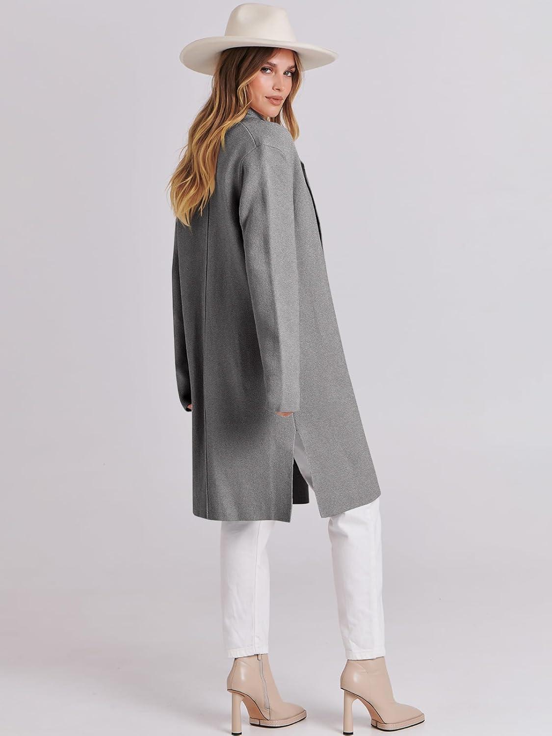 ANRABESS Women's Long Cardigans Sweater 2025 Fall Dressy Casual Lapel Knit Warm Trench Coatigan Oversized Blazer Jacket Coat(Light Grey)