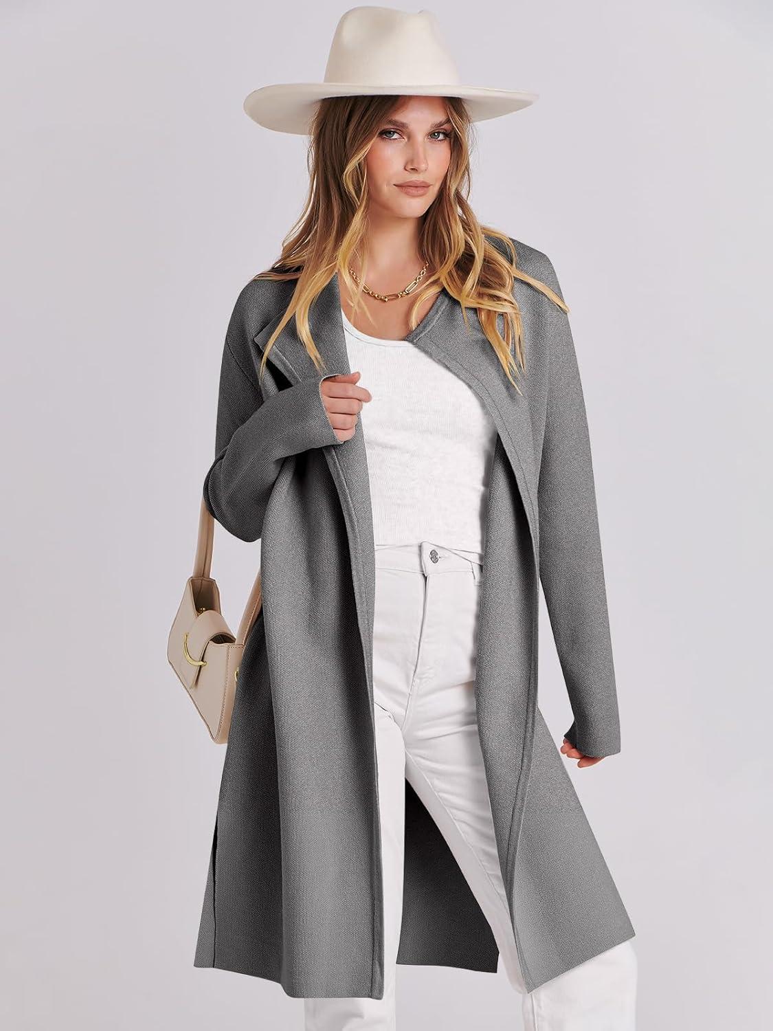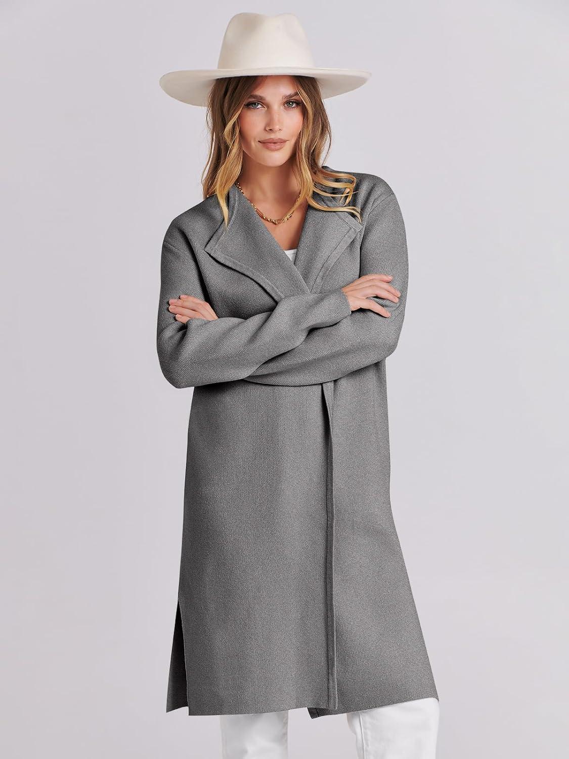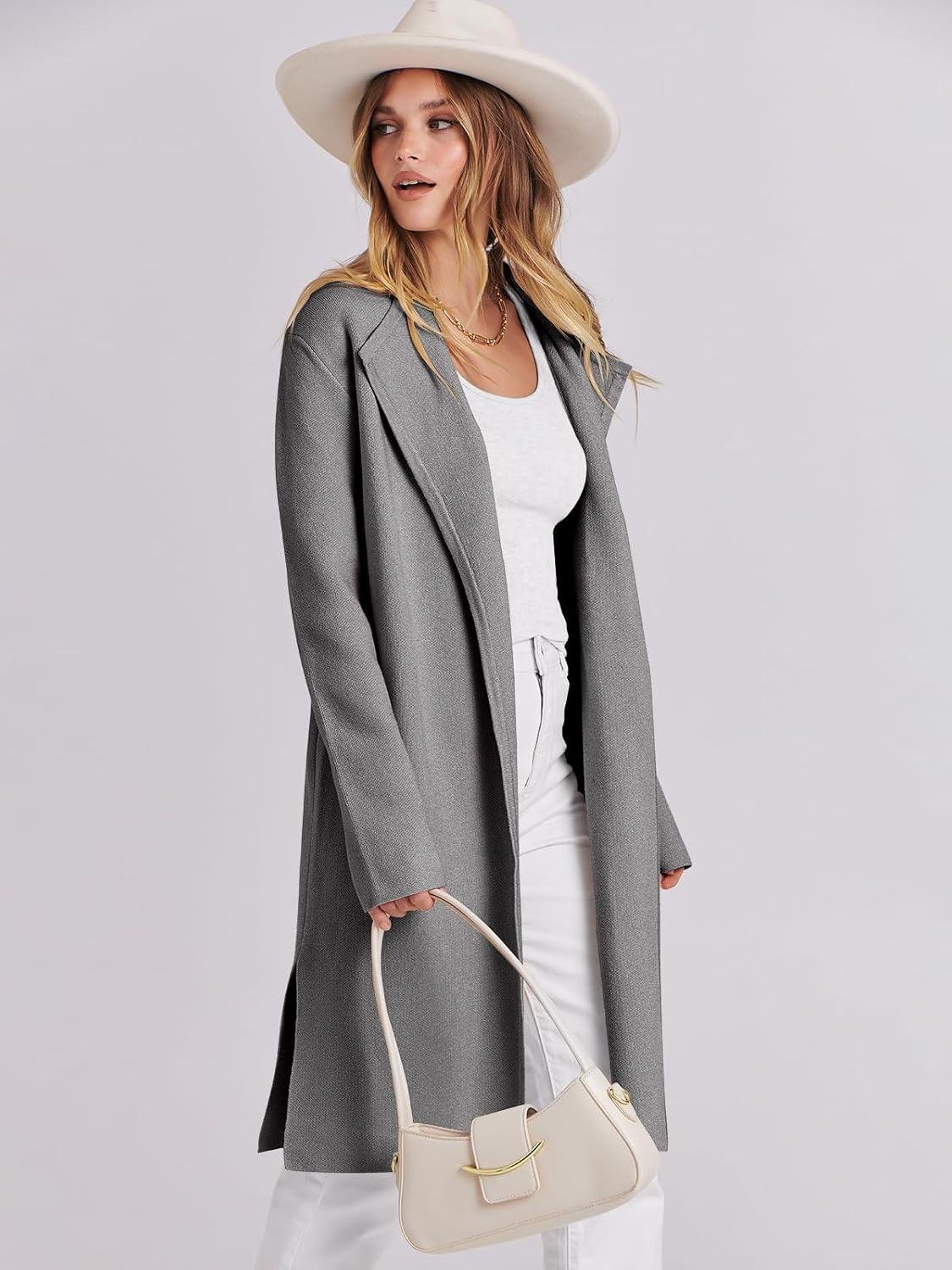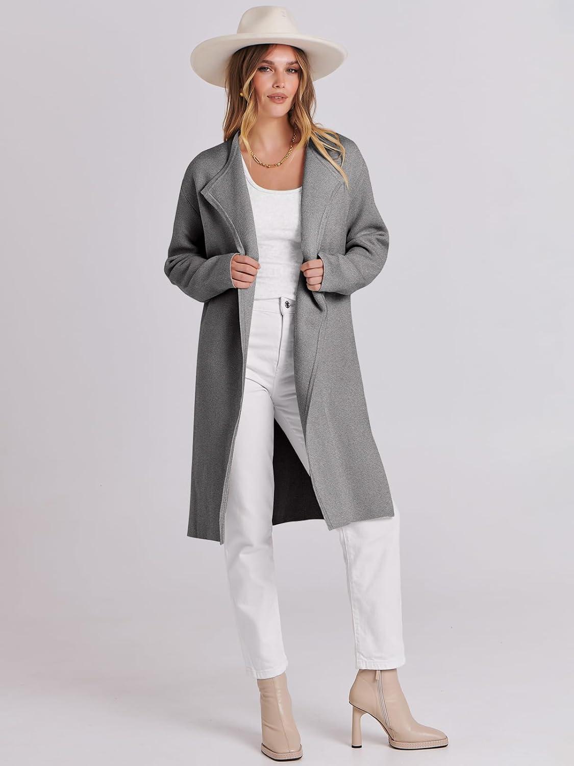 ANRABESS Women’s Long Cardigans Sweater 2025 Fall Dressy Casual Lapel Knit Warm Trench Coatigan Oversized Blazer Jacket Coat(Light Grey)
