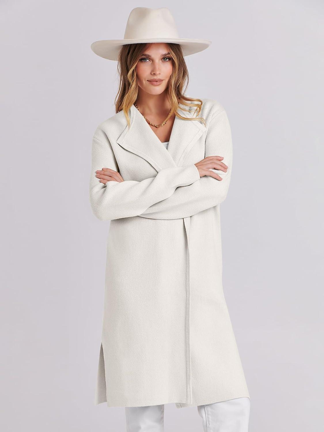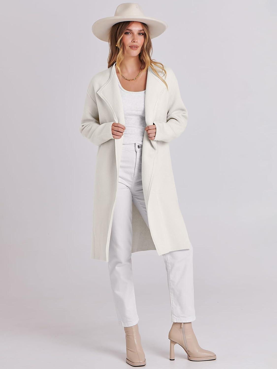 ANRABESS Women’s Long Cardigans Sweater 2025 Fall Dressy Casual Lapel Knit Warm Trench Coatigan Oversized Blazer Jacket Coat(White)