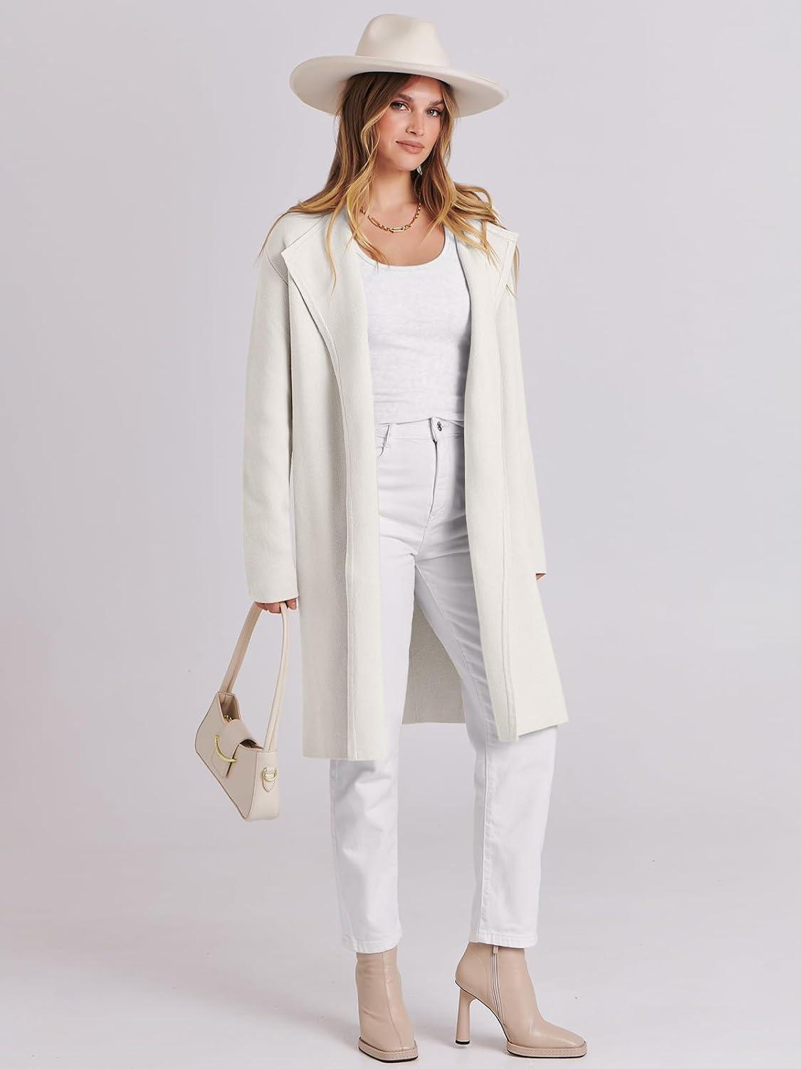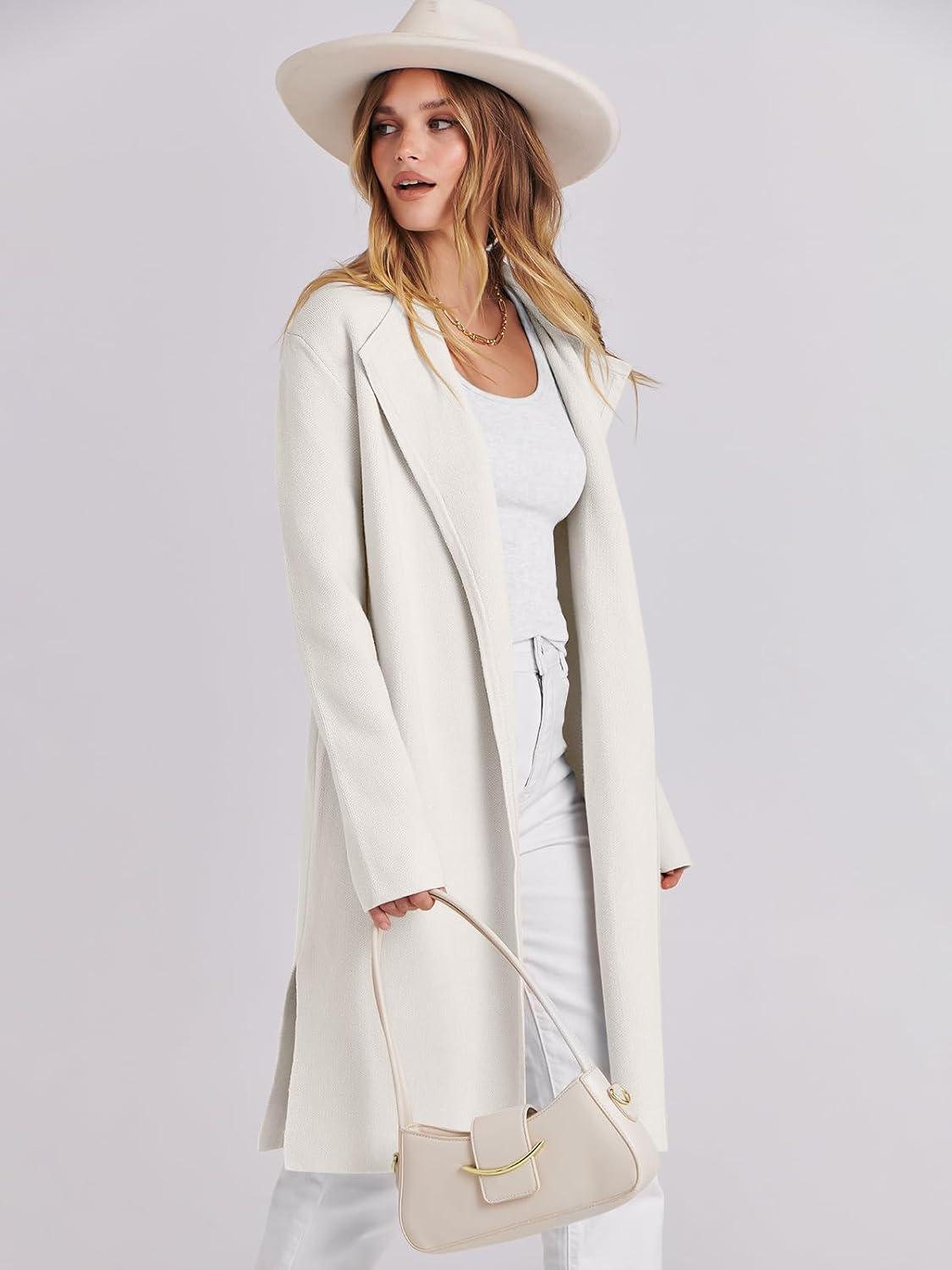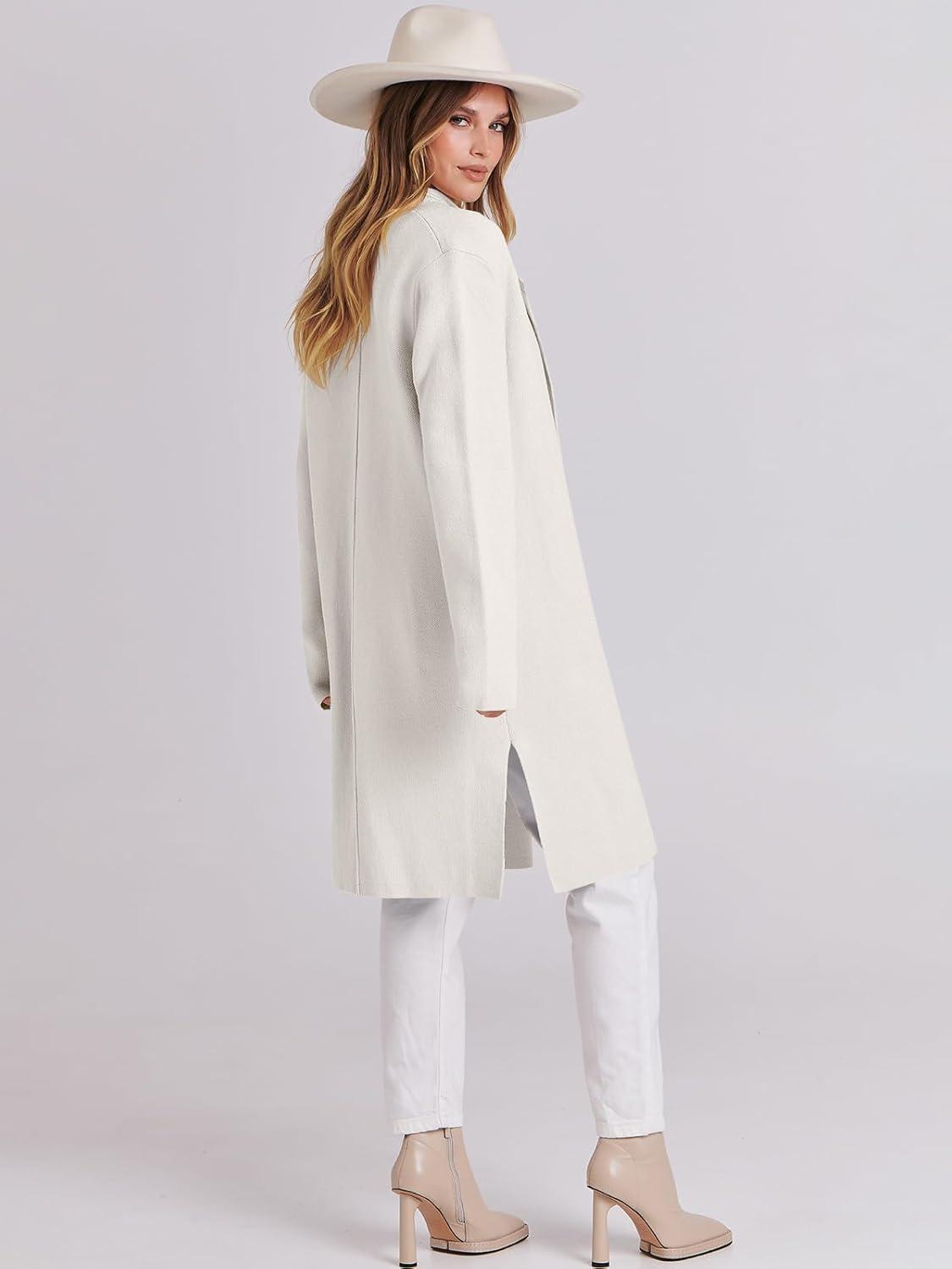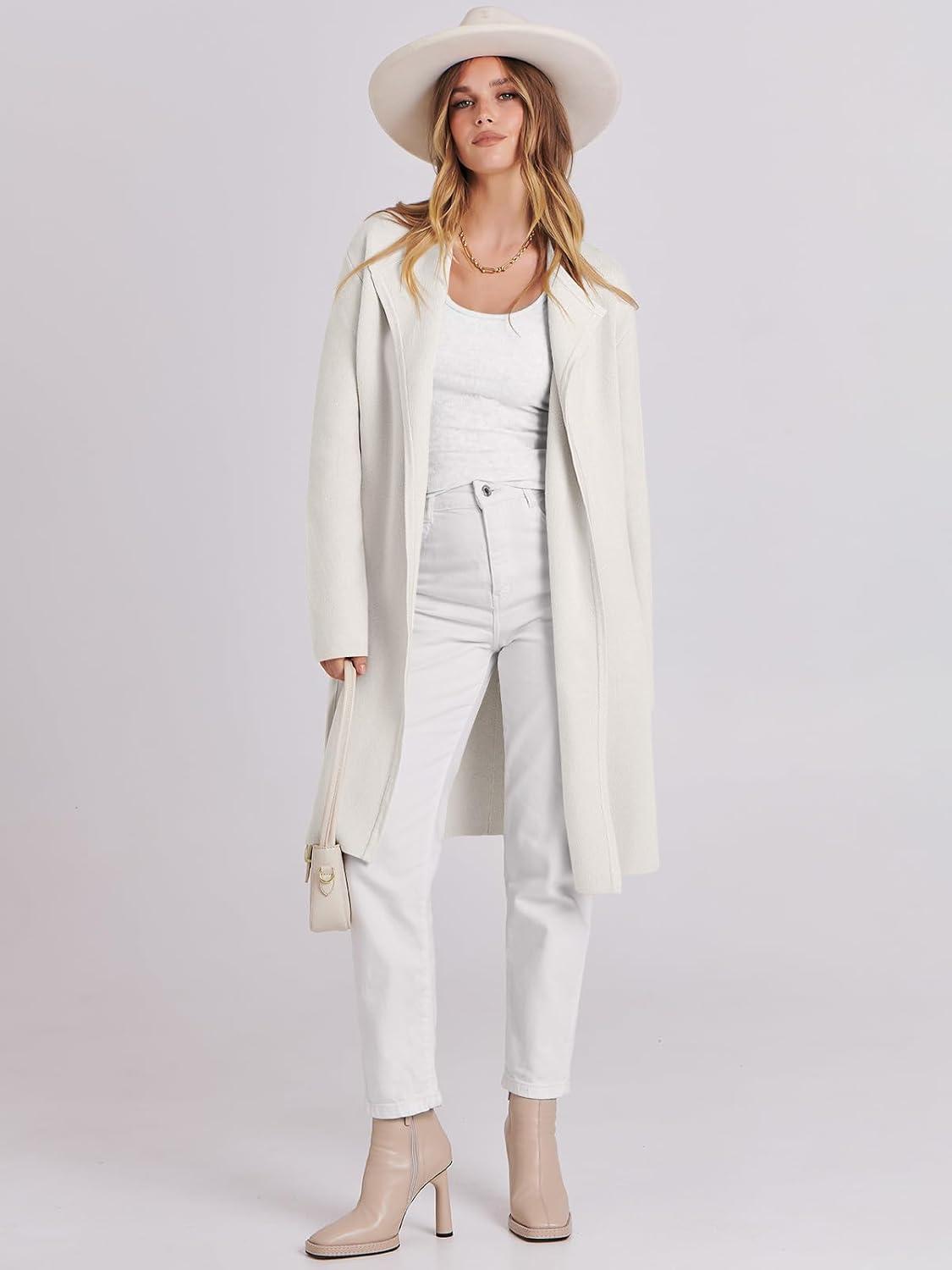 ANRABESS Women's Long Cardigans Sweater 2025 Fall Dressy Casual Lapel Knit Warm Trench Coatigan Oversized Blazer Jacket Coat(White)