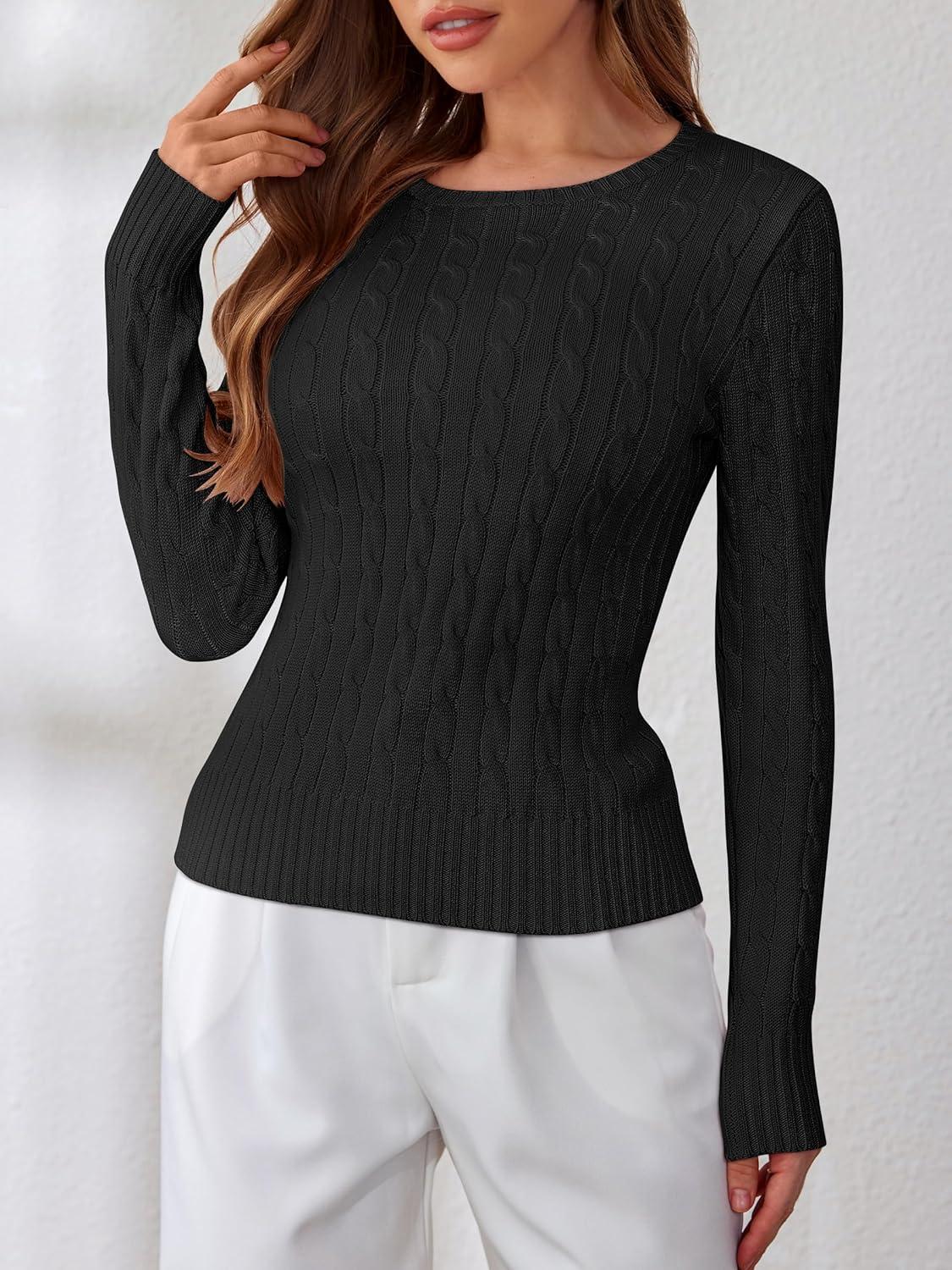 imageANRABESS Womens Long Sleeve Cable Knit Sweater Jumper Crewneck Pullover Soft Dressy Casual Tops Cute 2025 Fall Trendy OutfitsBlack