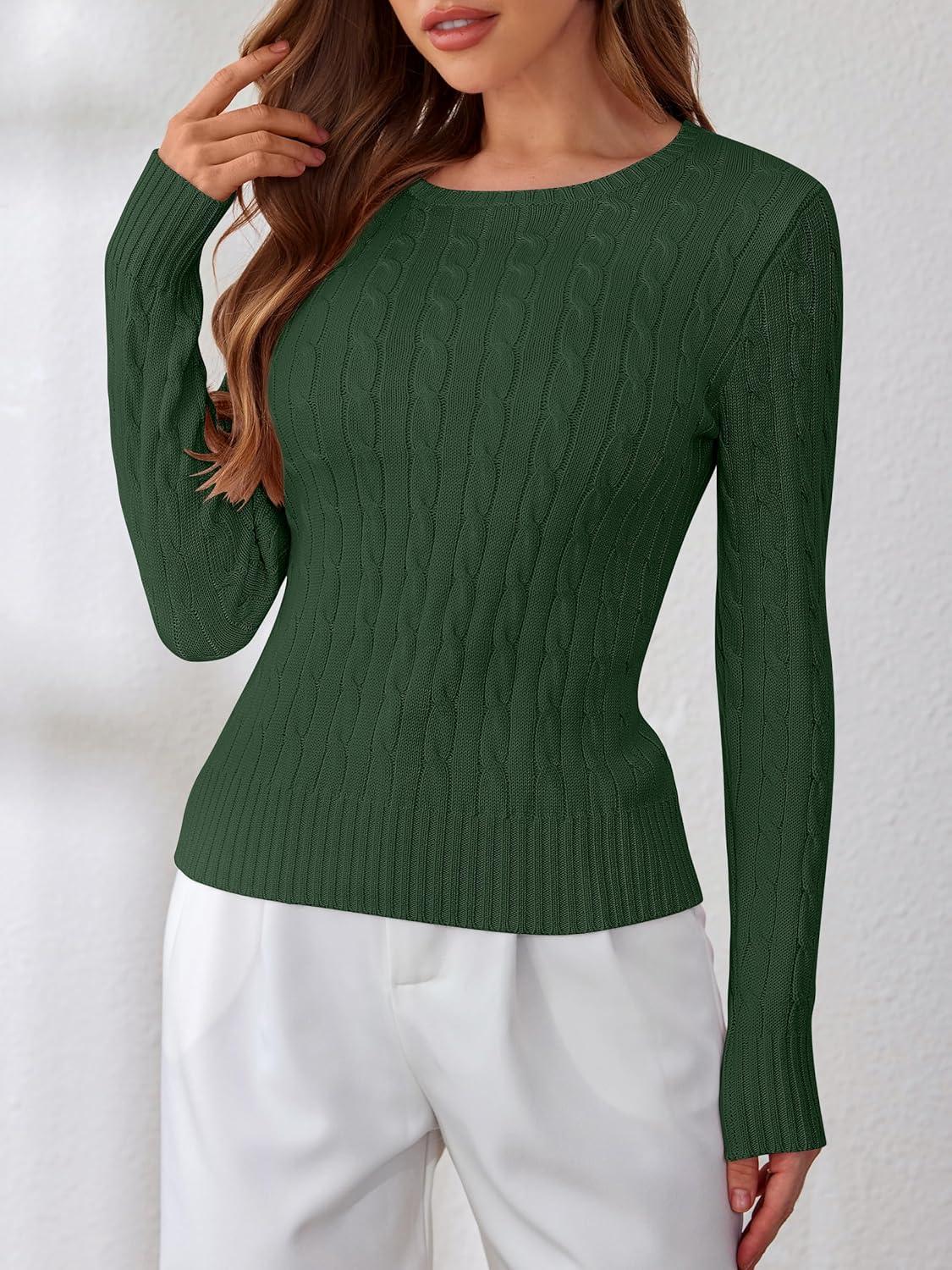 imageANRABESS Womens Long Sleeve Cable Knit Sweater Jumper Crewneck Pullover Soft Dressy Casual Tops Cute 2025 Fall Trendy OutfitsDeep Green
