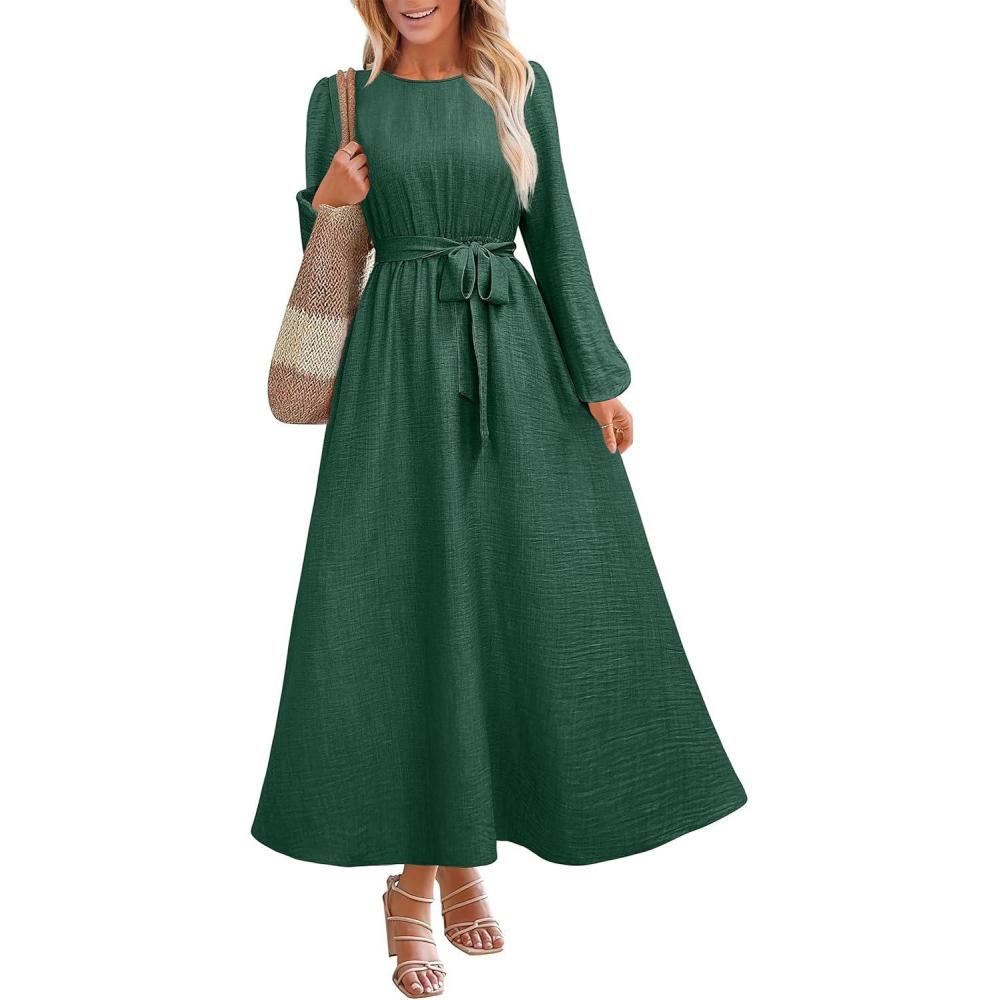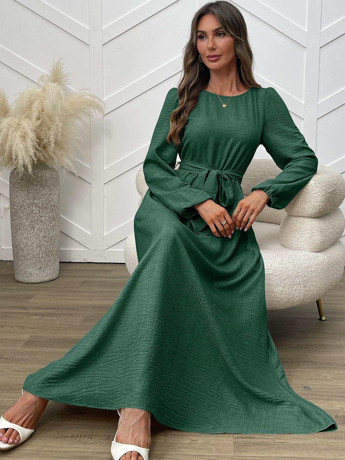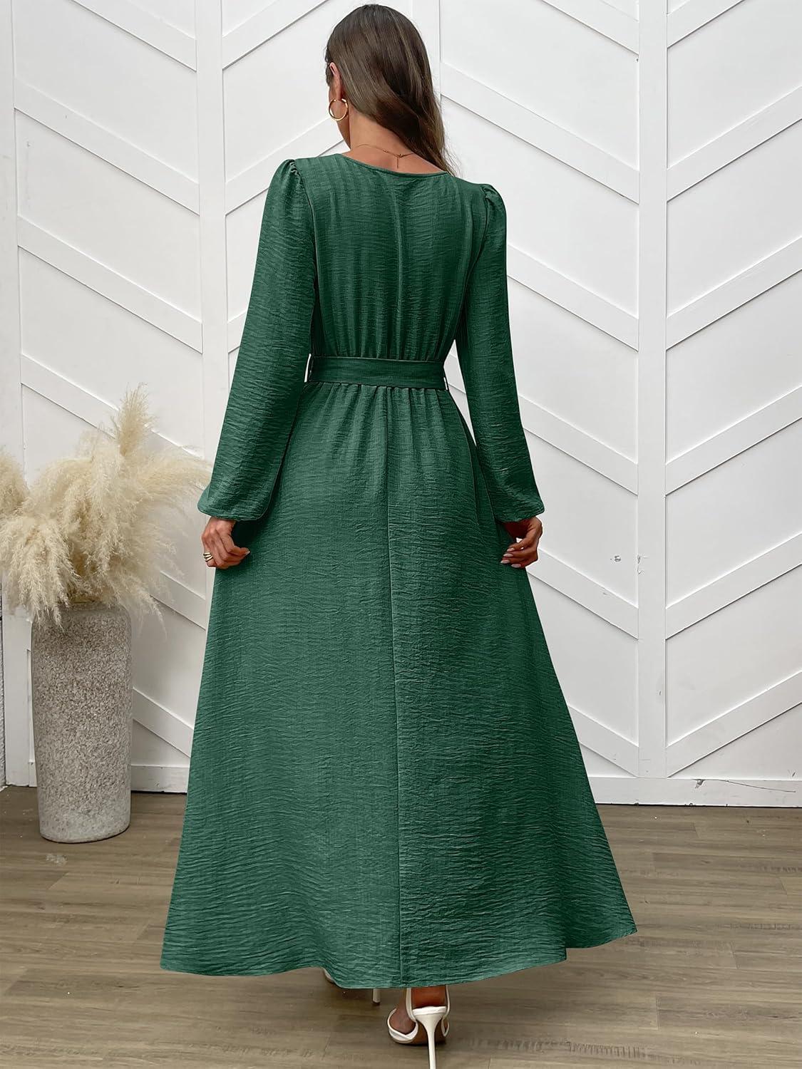 ANRABESS Womens Long Sleeve Dress 2025 Fall Casual Empire Waist A-Line Flowy Maxi Dresses with Pockets Vacation Outfits(Forest Green)