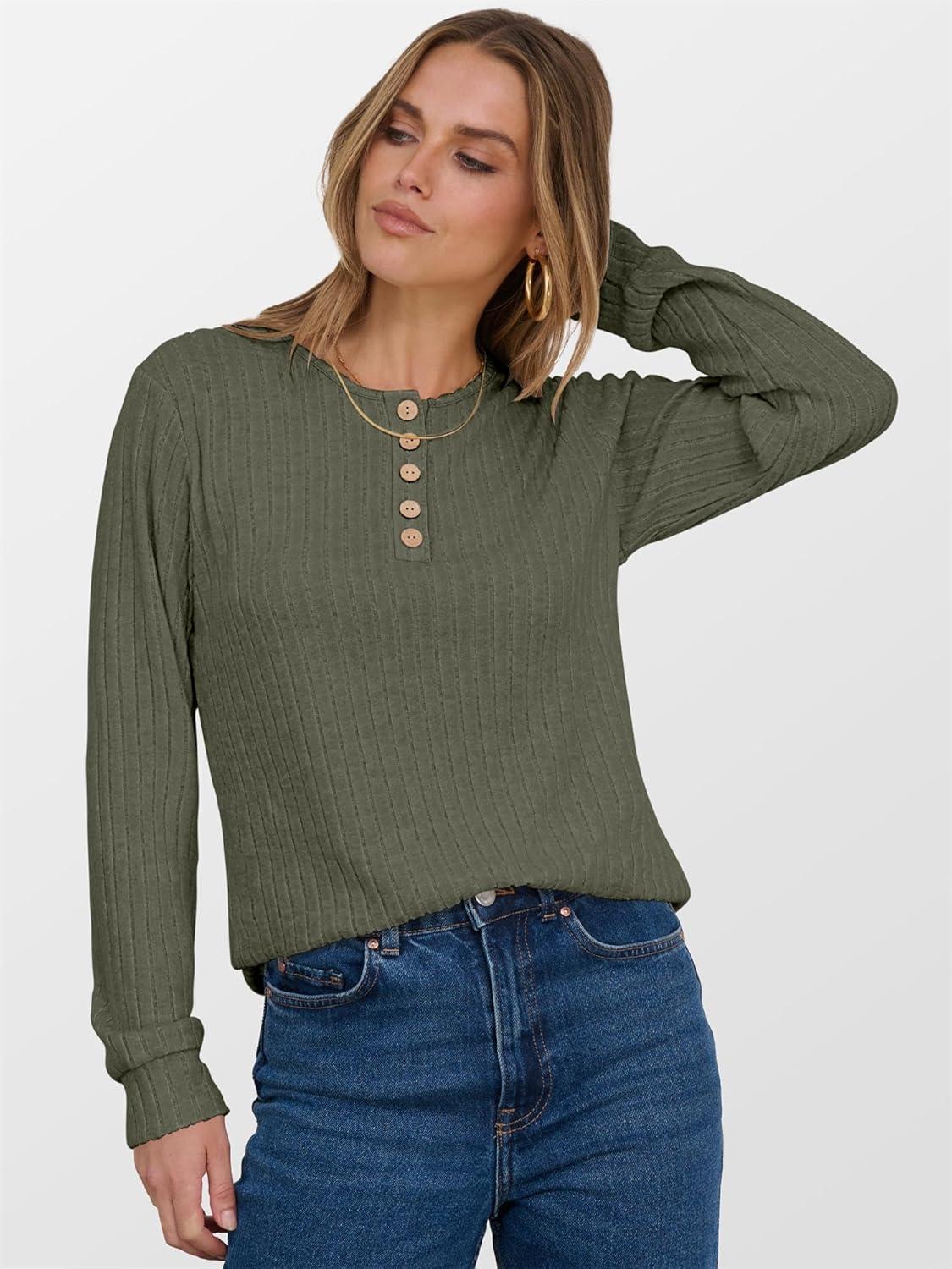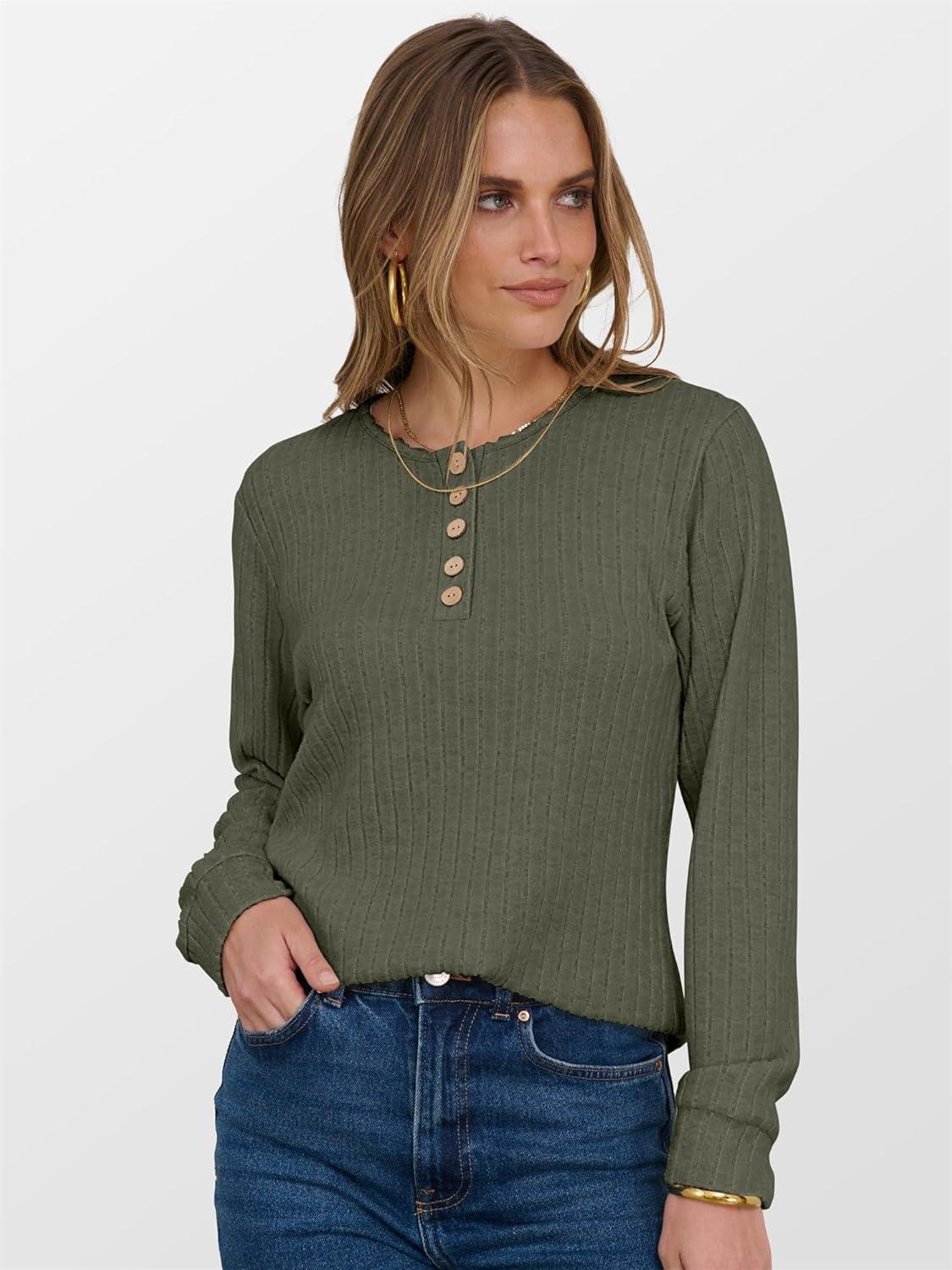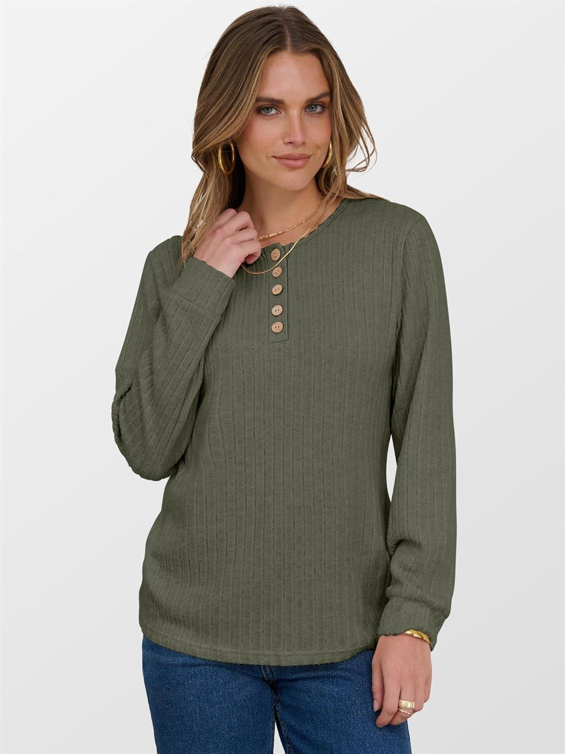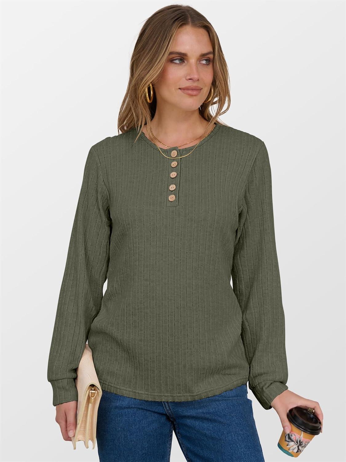 imageANRABESS Womens Long Sleeve Henley Shirts Button Down Tunic Tops Fall Lightweight Sweaters Business Casual Blouses 2025Green