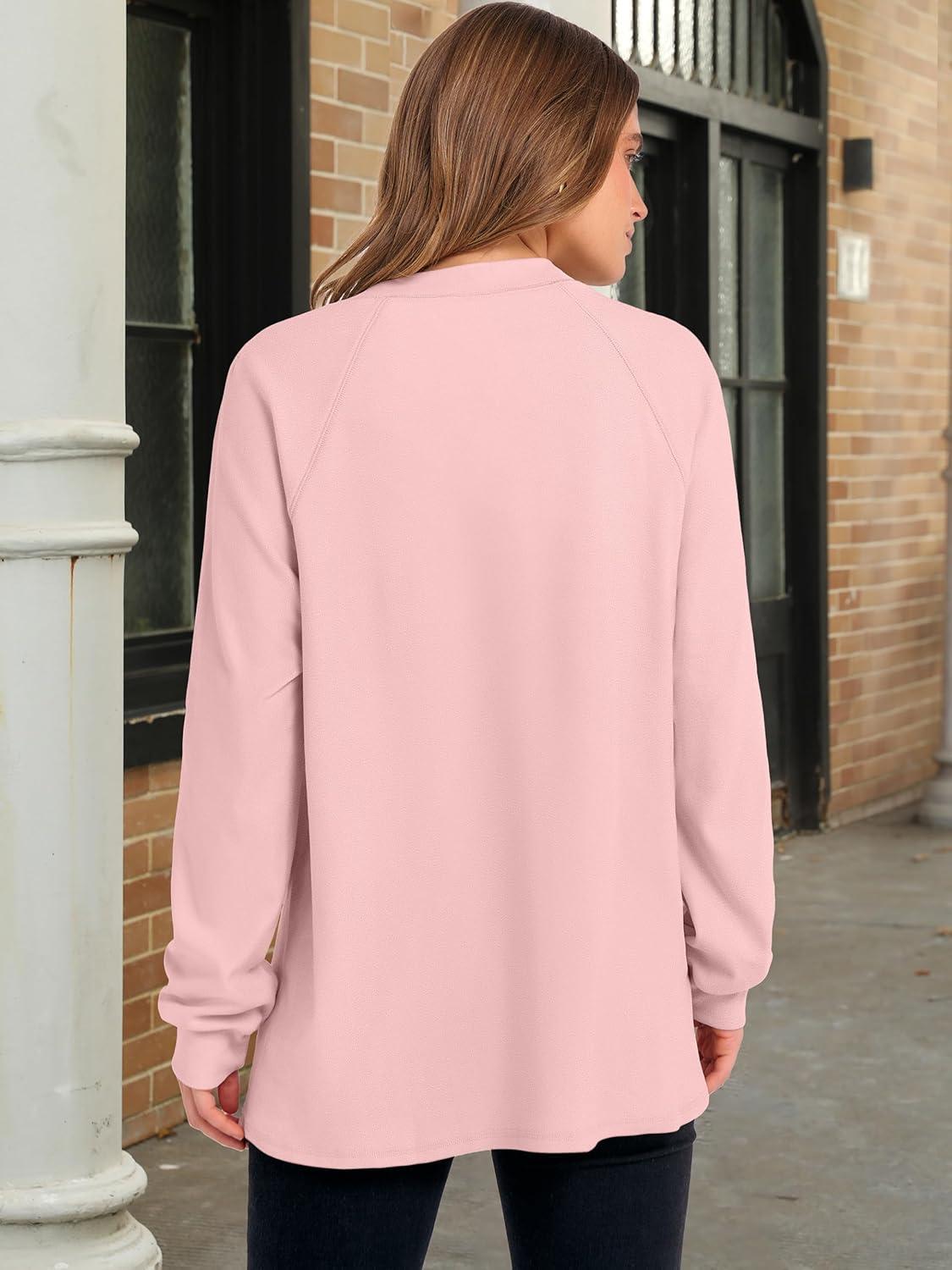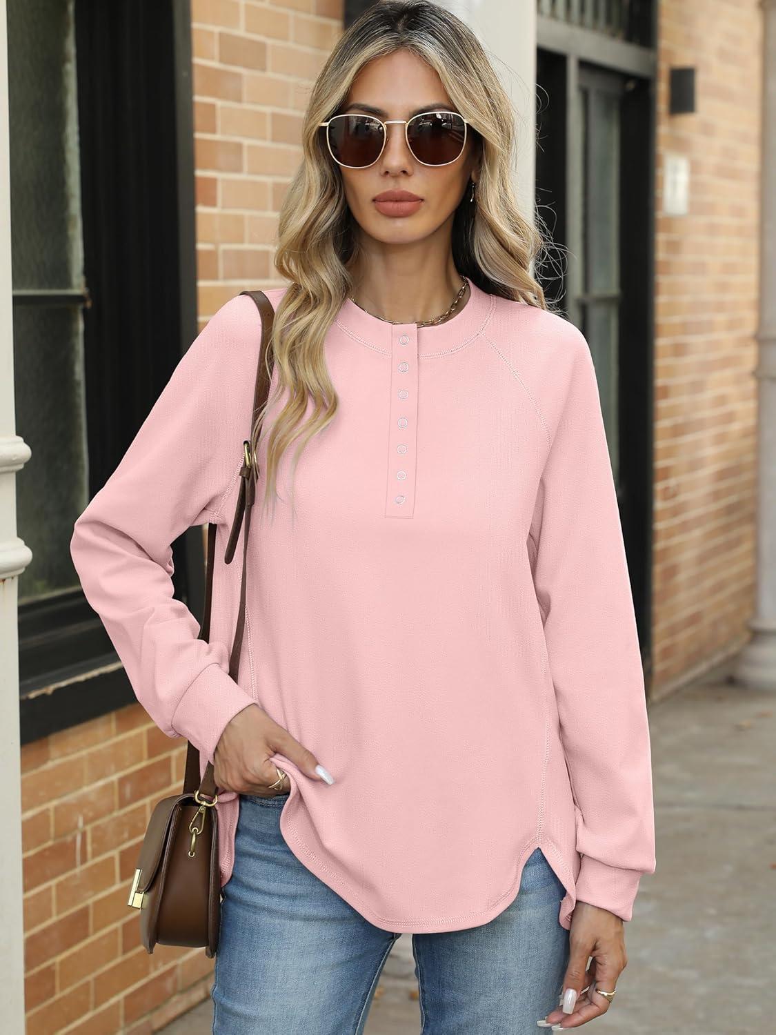 ANRABESS Women’s Long Sleeve Henley Tops Tunic Sweatshirt Loose Slit Casual Button Shirts Pullover 2025 Fall Winter Outfits(Pink)