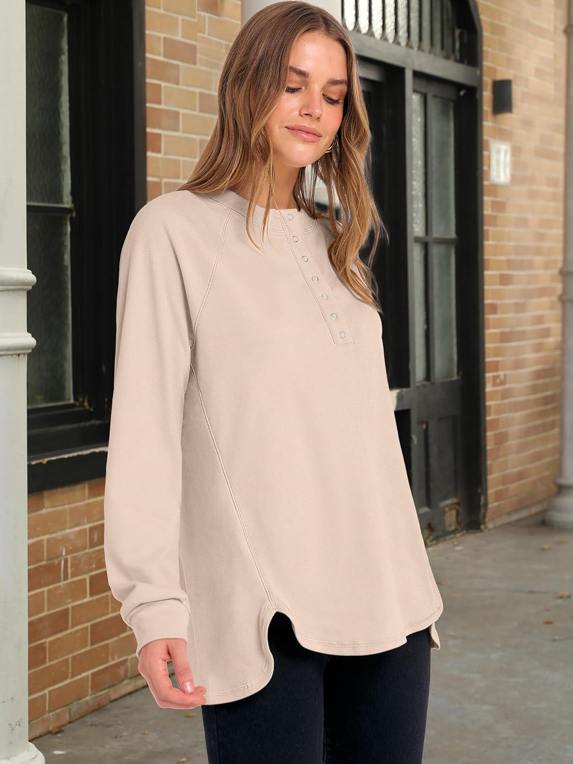 ANRABESS Women’s Long Sleeve Henley Tops Tunic Sweatshirt Loose Slit Casual Button Shirts Pullover 2026 Spring Winter Outfits(Beige)