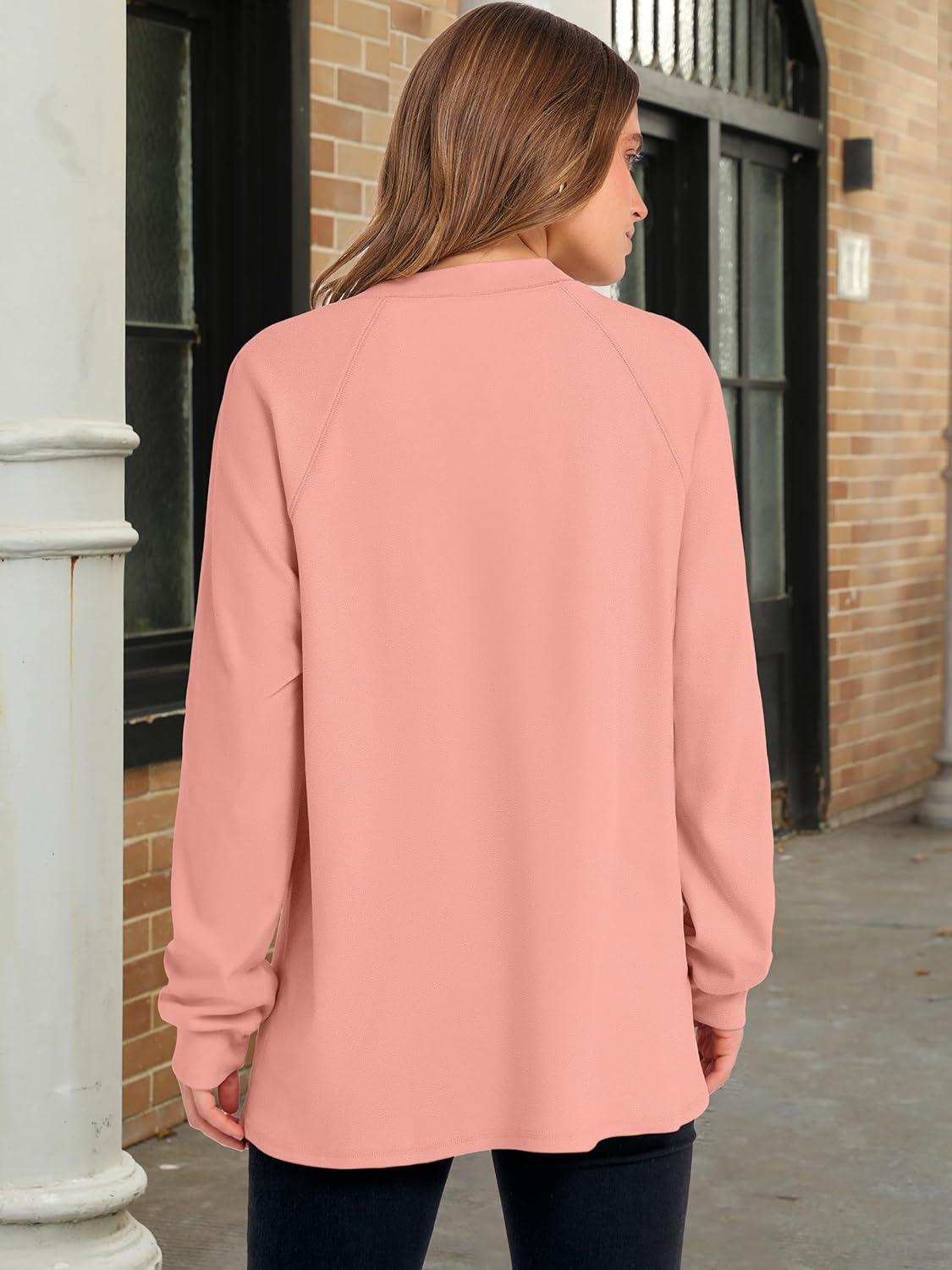 ANRABESS Women’s Long Sleeve Henley Tops Tunic Sweatshirt Loose Slit Casual Button Shirts Pullover 2026 Spring Winter Outfits(Coral Pink)