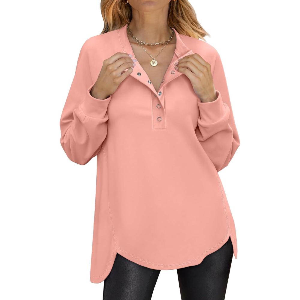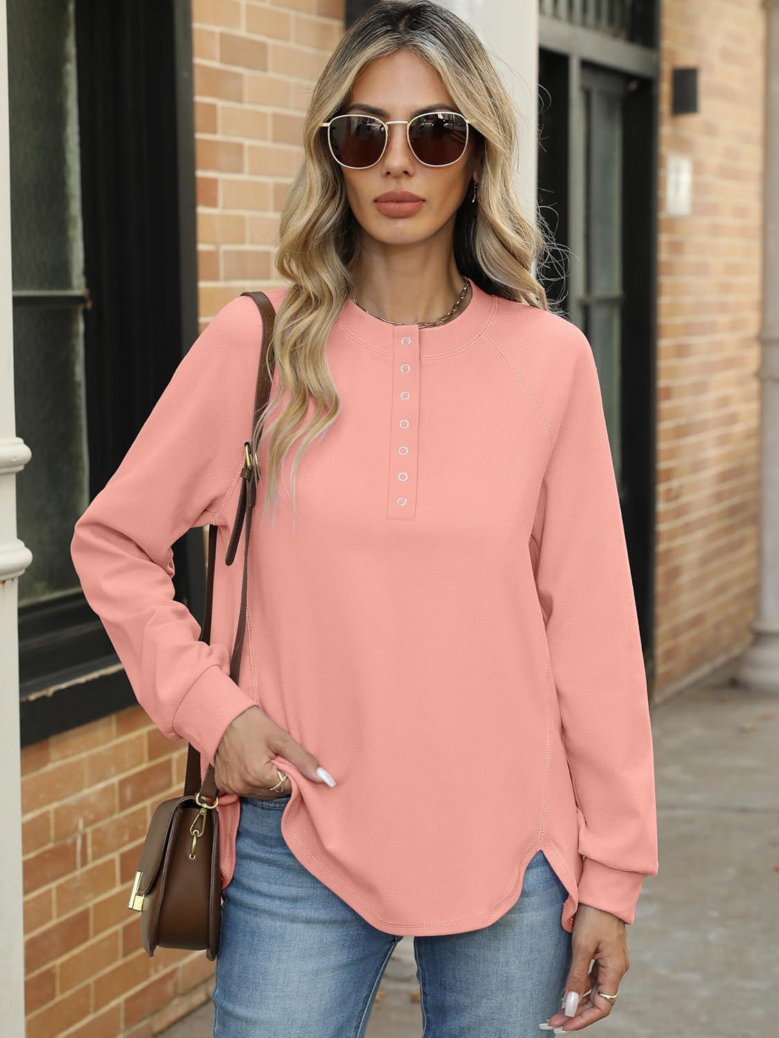 imageANRABESS Womens Long Sleeve Henley Tops Tunic Sweatshirt Loose Slit Casual Button Shirts Pullover 2026 Spring Winter OutfitsCoral Pink