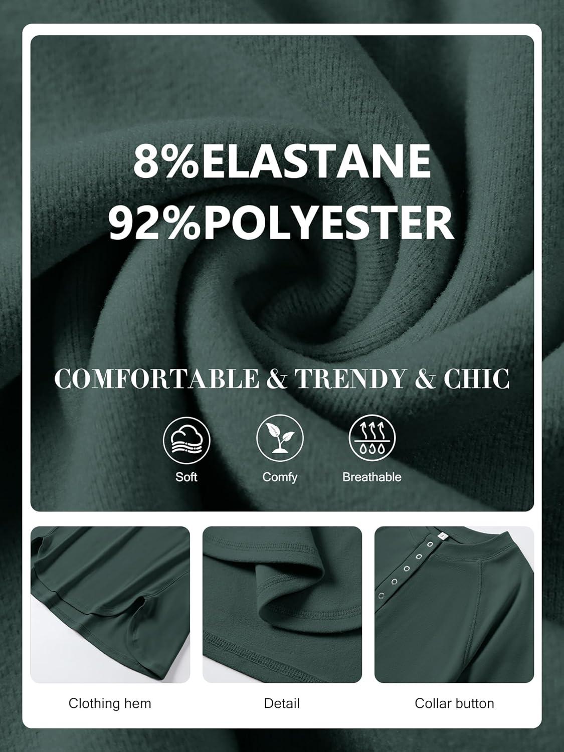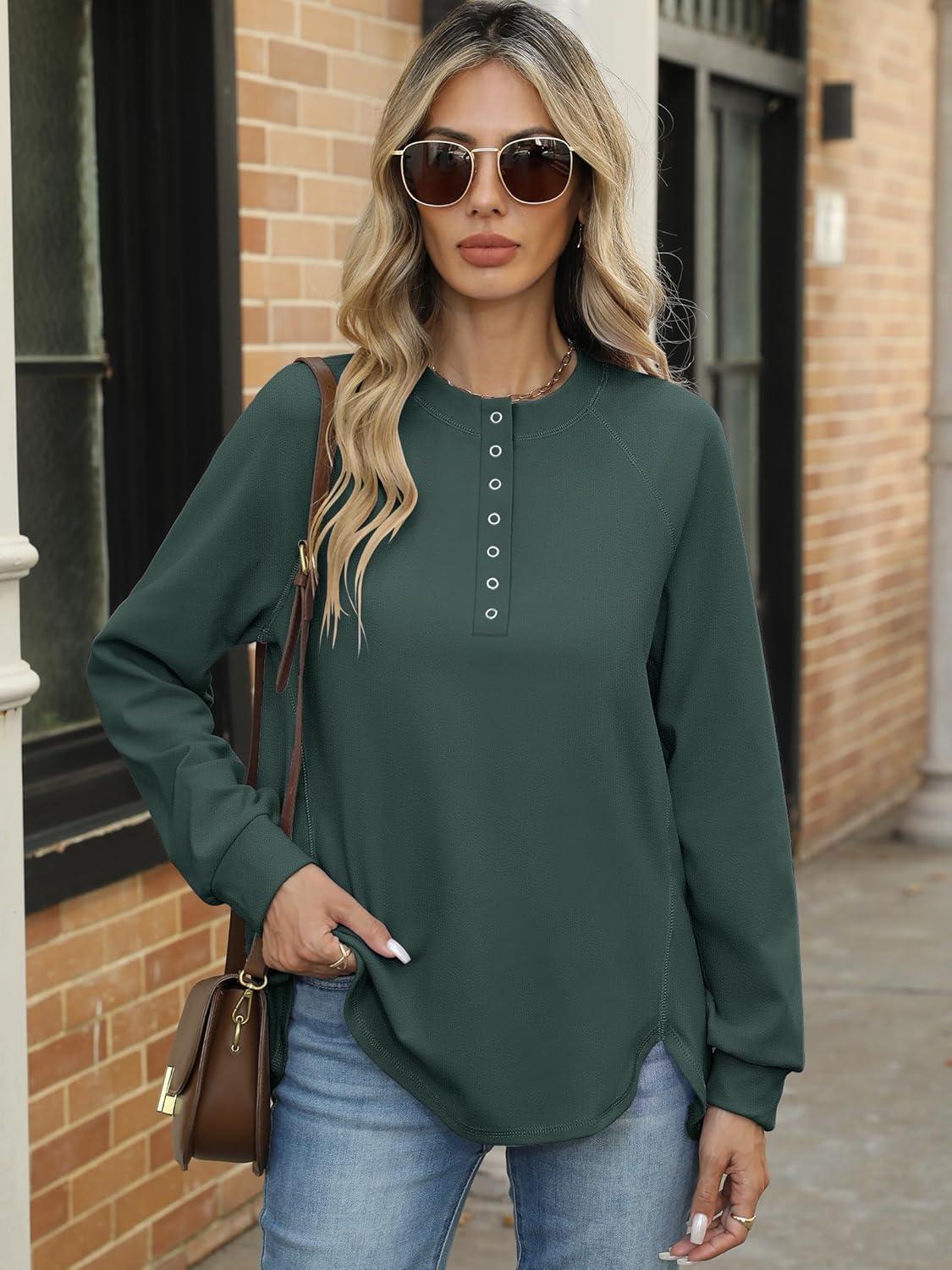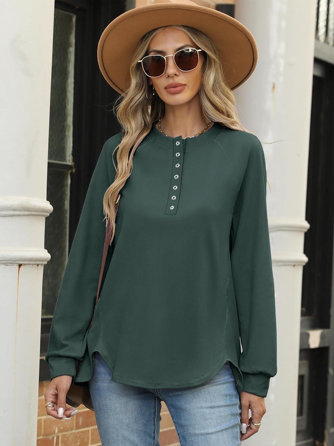 ANRABESS Women's Long Sleeve Henley Tops Tunic Sweatshirt Loose Slit Casual Button Shirts Pullover 2026 Spring Winter Outfits(Dark Green)