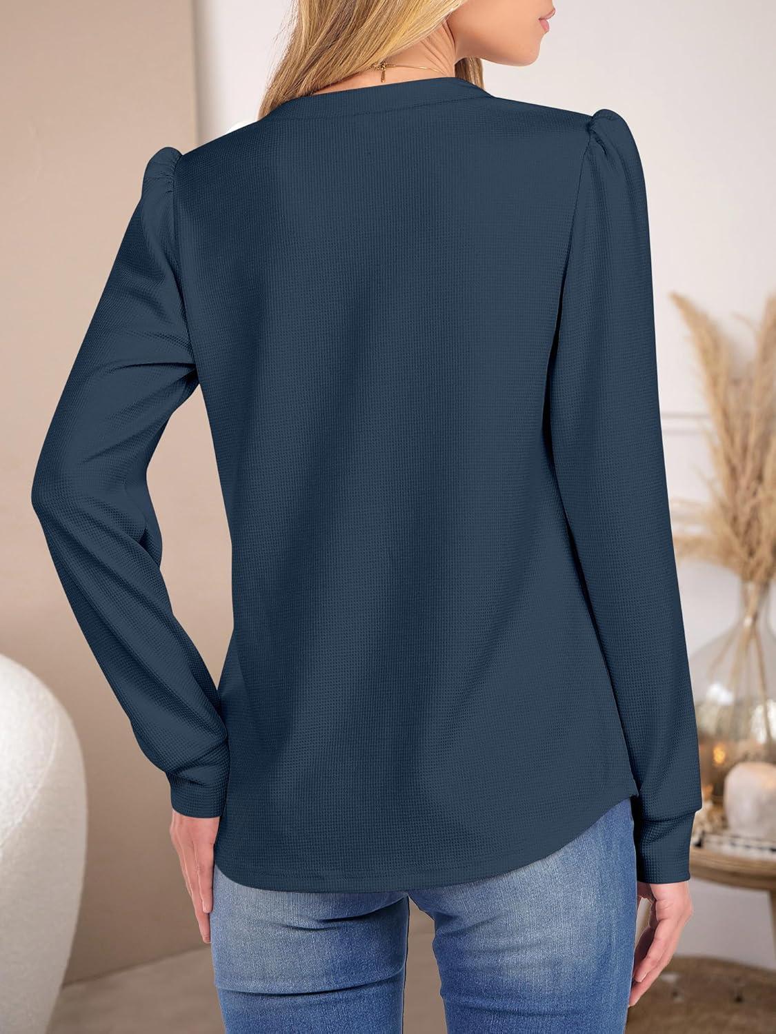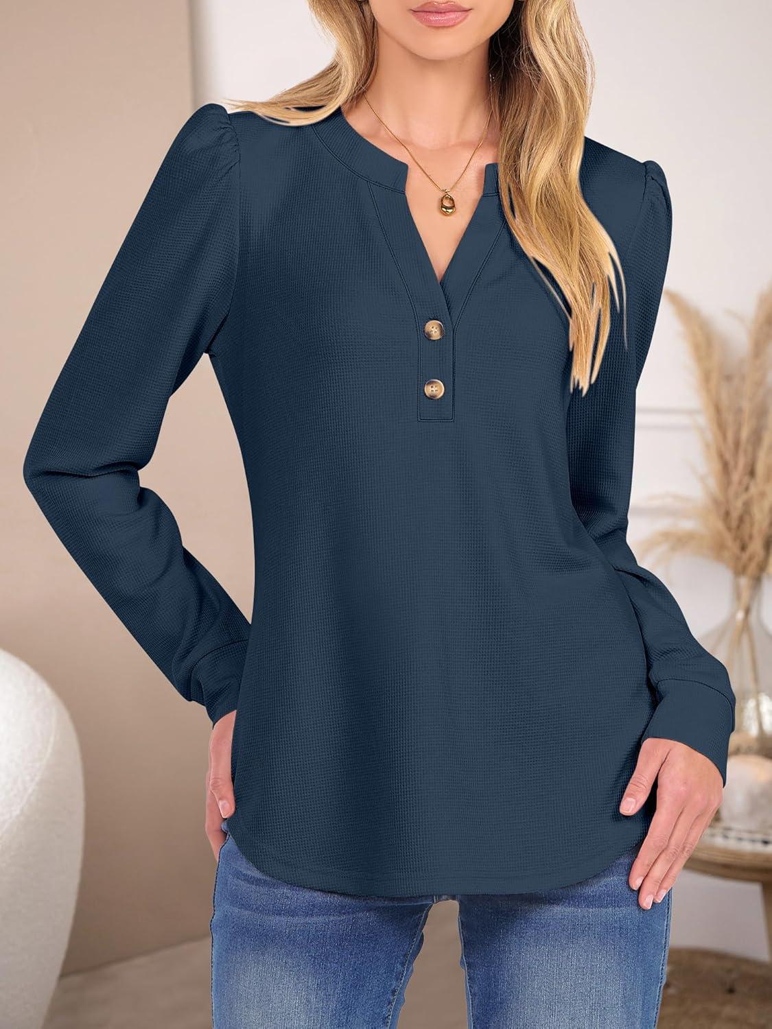 ANRABESS Women’s Long Sleeve Henley Tops Waffle Knit Tunics Shirts Dressy Casual Blouses Cute T-Shirts 2025 Fall Outfit(Navy Blue)