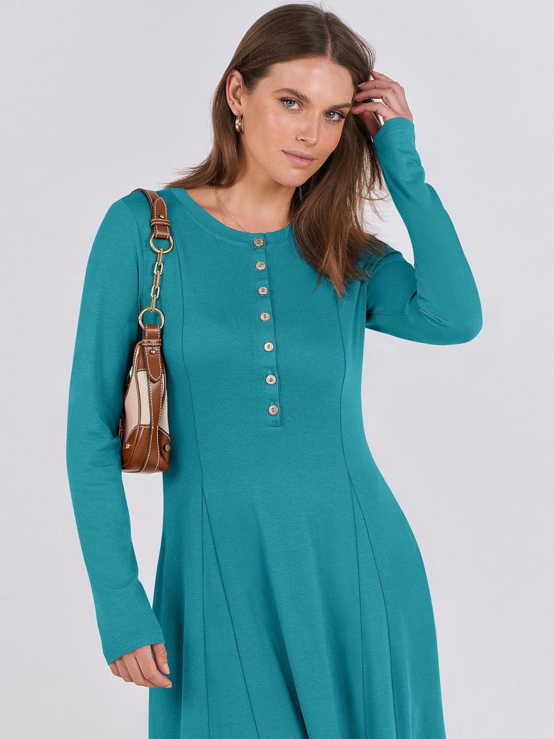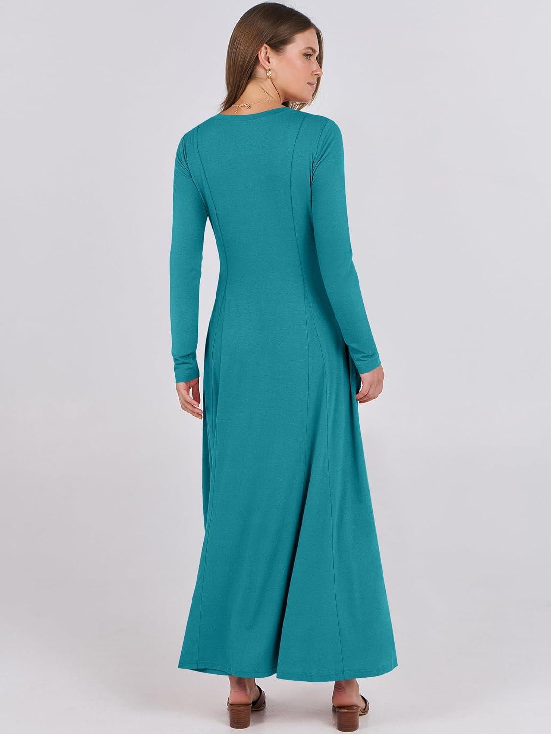 ANRABESS Women’s Long Sleeve Maxi Dress 2025 Fall Casual Button Fit & Flare A-Line Swing Flowy Long Dresses Trendy Outfits(Lake Green)