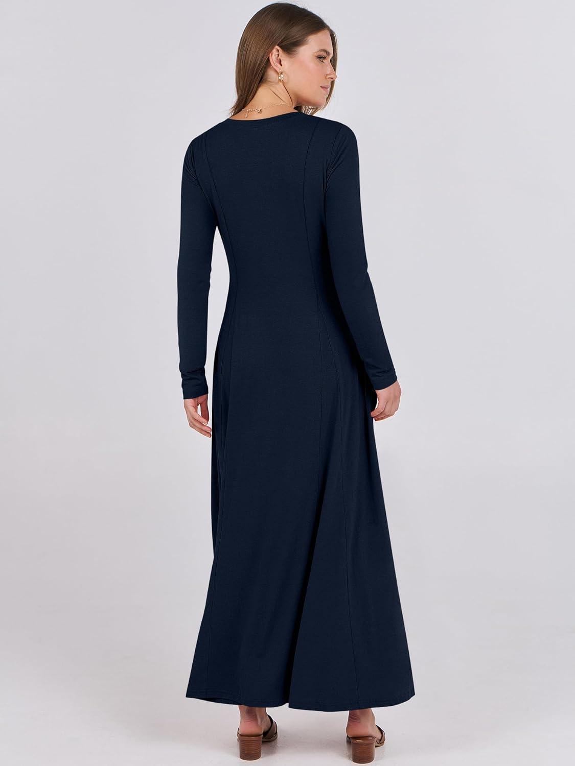ANRABESS Women’s Long Sleeve Maxi Dress 2025 Fall Casual Button Fit & Flare A-Line Swing Flowy Long Dresses Trendy Outfits(Navy Blue)