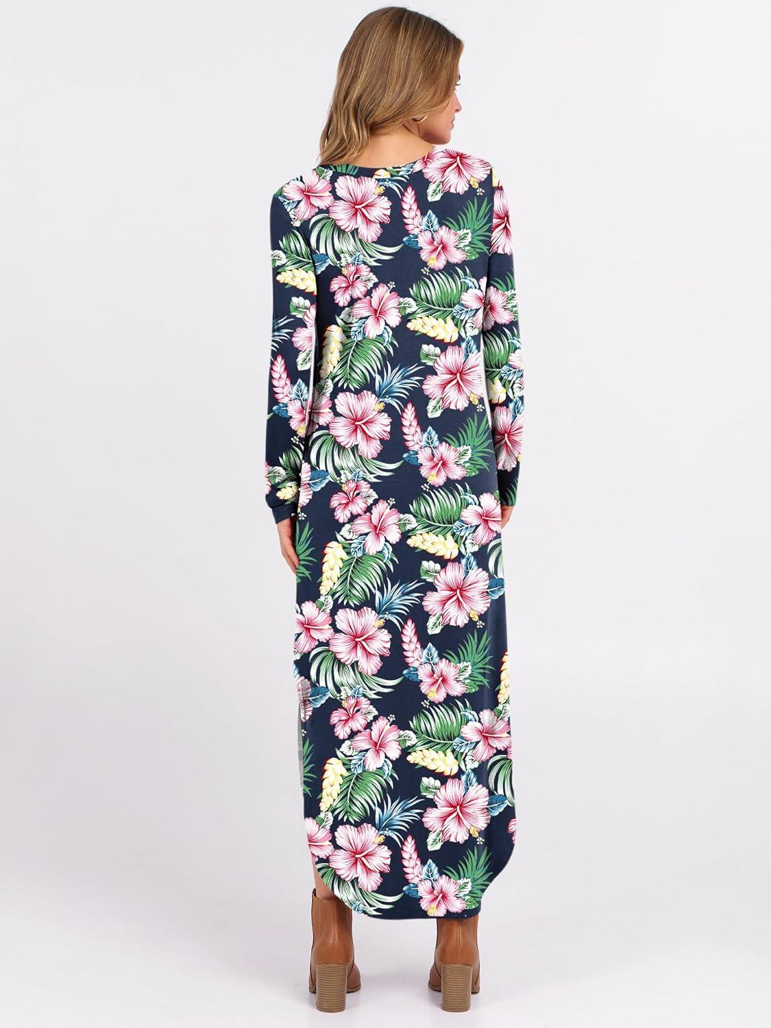 ANRABESS Women's Long Sleeve Maxi Dresses 2025 Fall Outfits Casual Loose Split Travel Vacation T Shirt Dress with Pockets(Floral Green Pink)