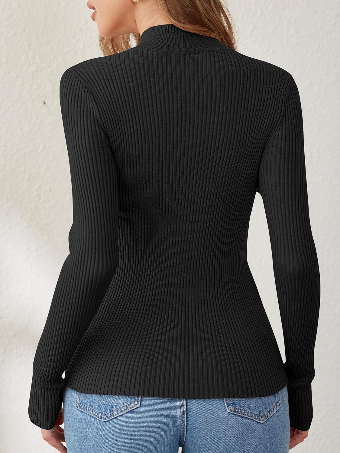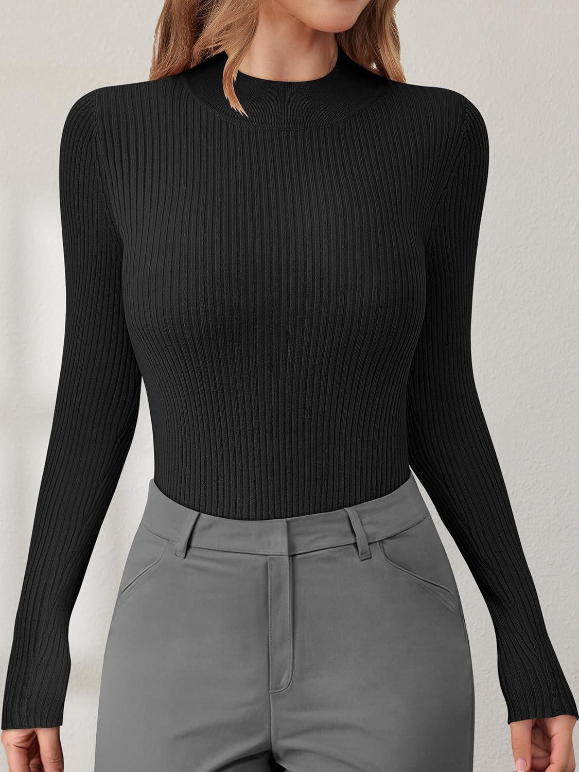 Women's mock turtleneck sweaters feature long sleeve, ribbed knit, fitted and lightweight. Made of soft material, it's very comfortable to wear inside or outside, warm, simple and versatile.