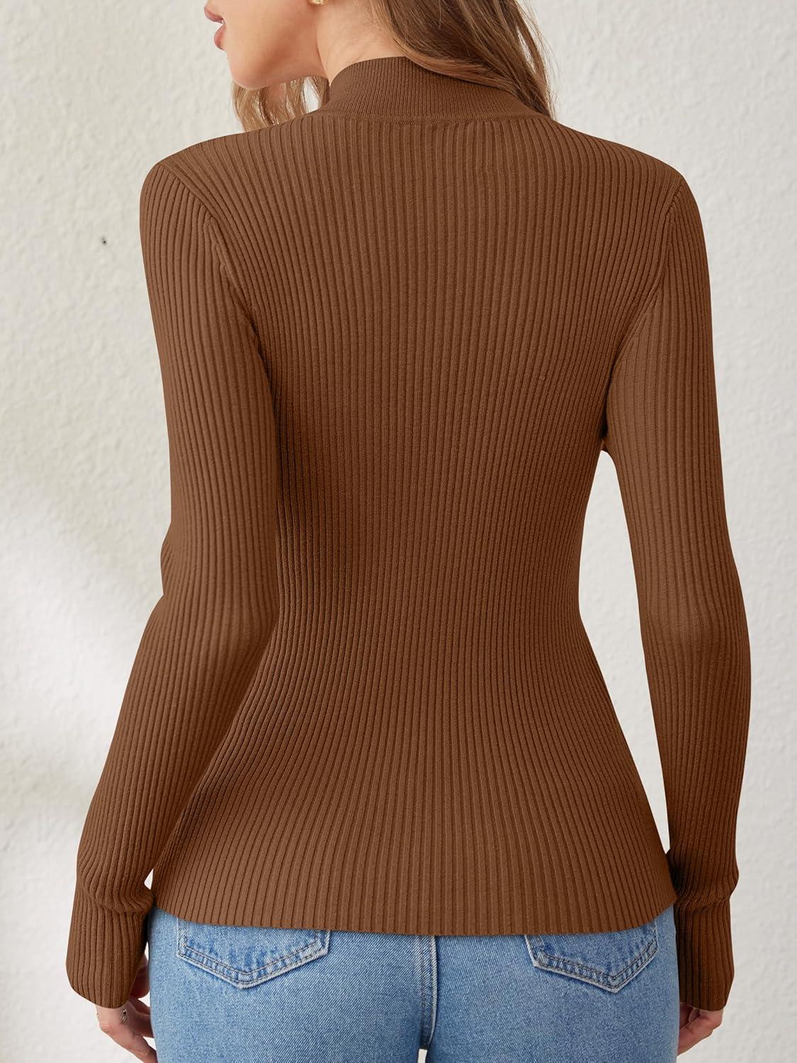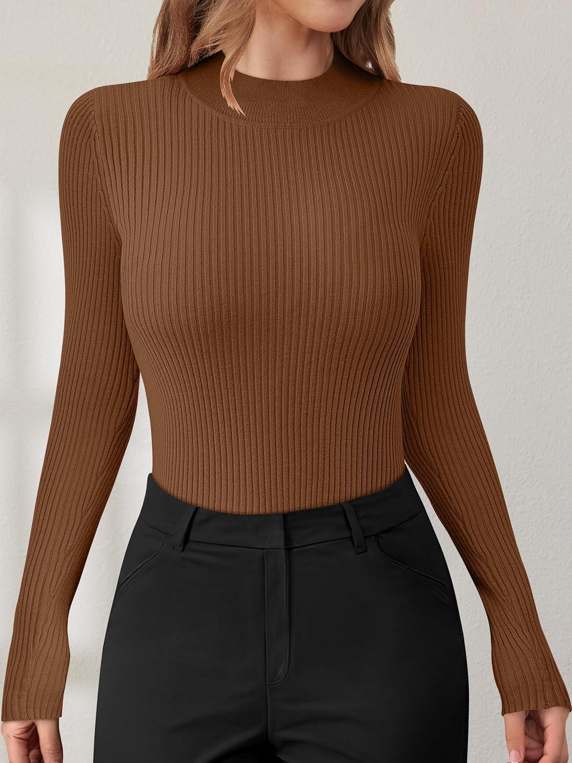 Women's mock turtleneck sweaters feature long sleeve, ribbed knit, fitted and lightweight. Made of soft material, it's very comfortable to wear inside or outside, warm, simple and versatile.