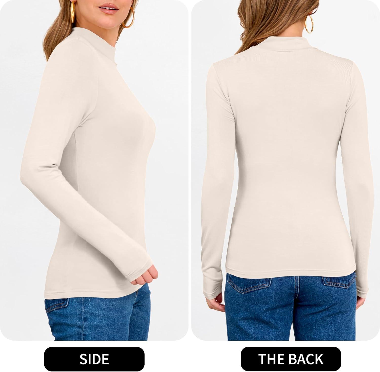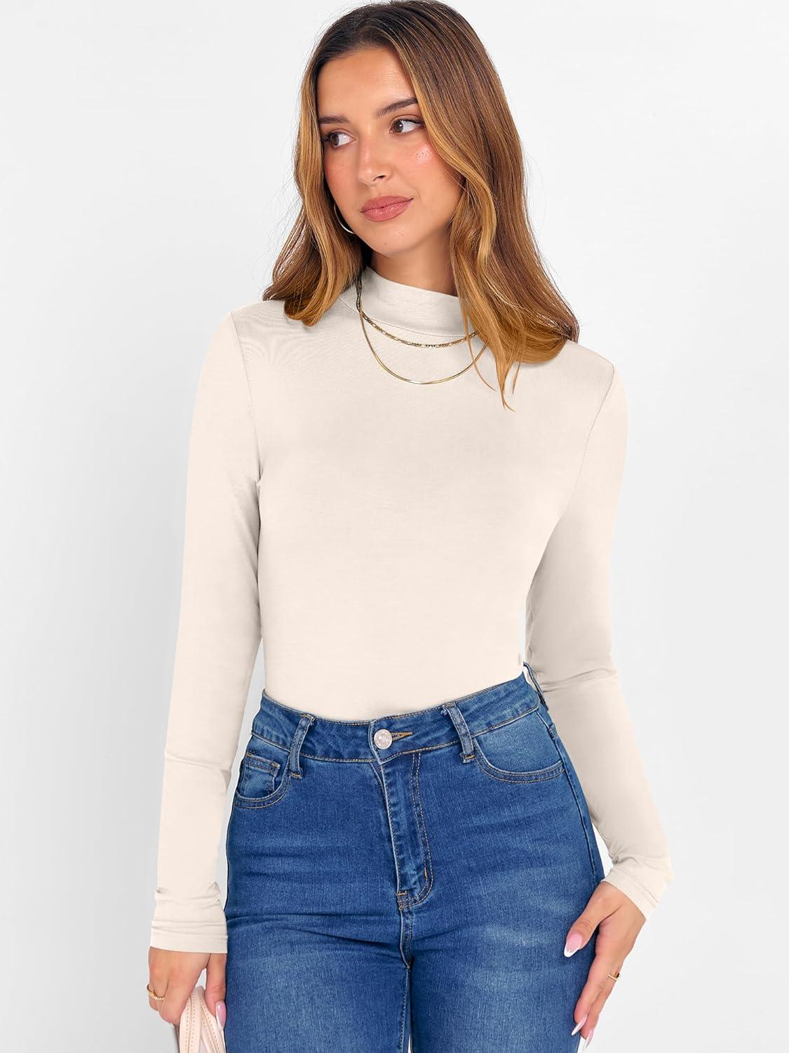 imageANRABESS Womens Long Sleeve Mock Neck Tops Slim Fitted Basic Layer Office Work Shirts 2025 Fall Outfits Y2K ClothesBeige