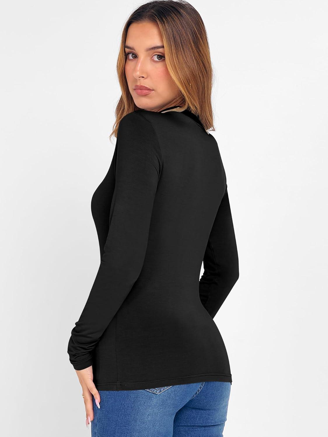 imageANRABESS Womens Long Sleeve Mock Neck Tops Slim Fitted Basic Layer Office Work Shirts 2025 Fall Outfits Y2K ClothesBlack