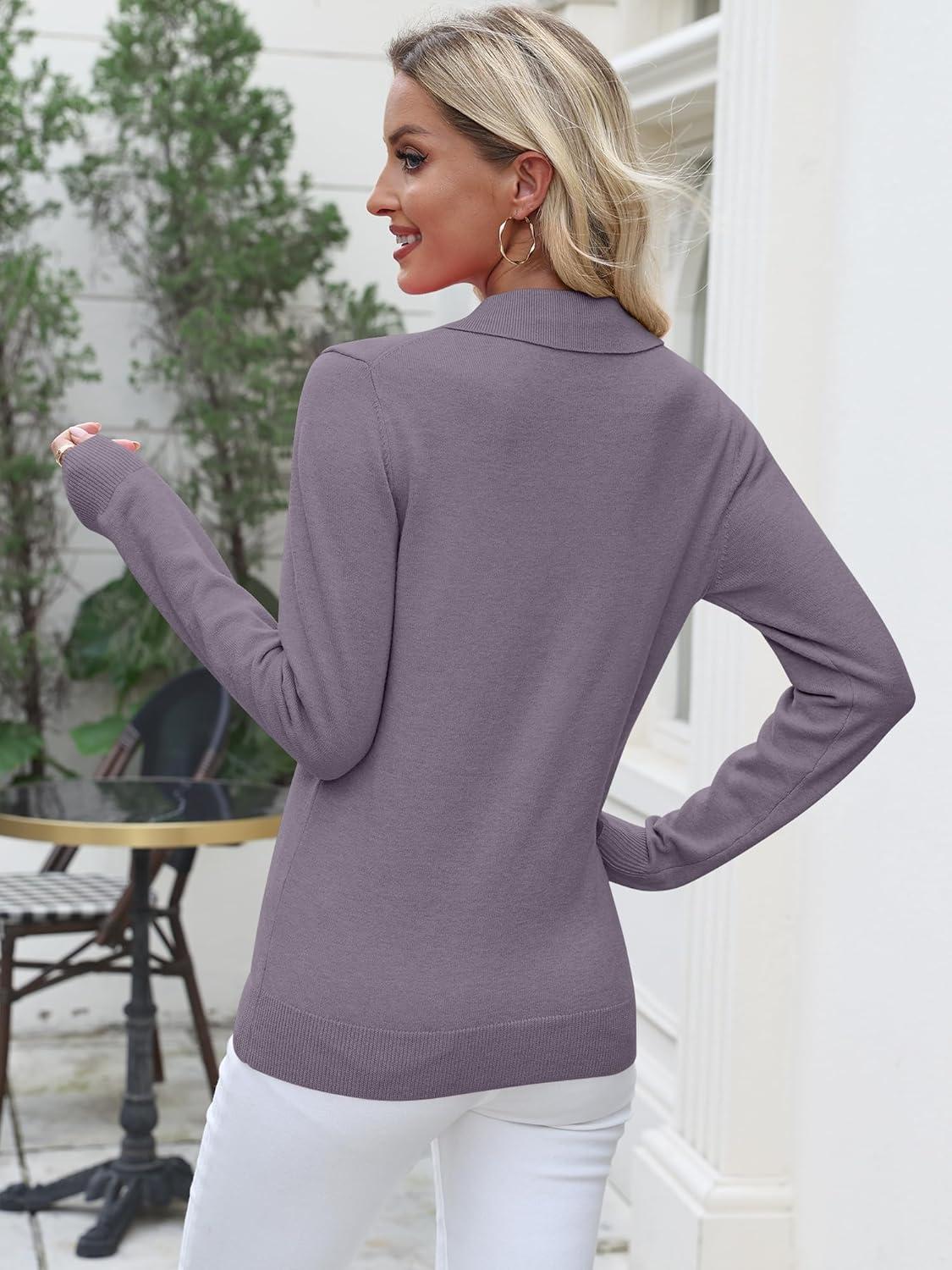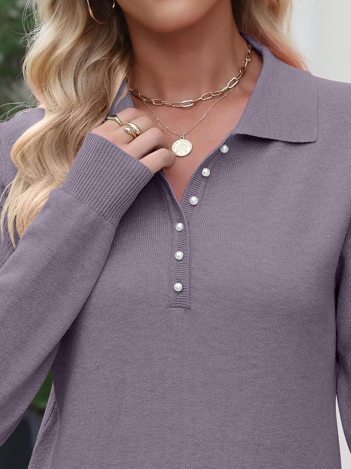 imageANRABESS Womens Long Sleeve Polo Sweaters Knit Button Shirt Lightweight Dressy Casual Basic Pullover Tops 2025 Fall FashionNutmeg