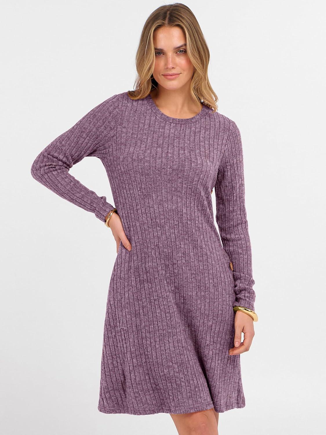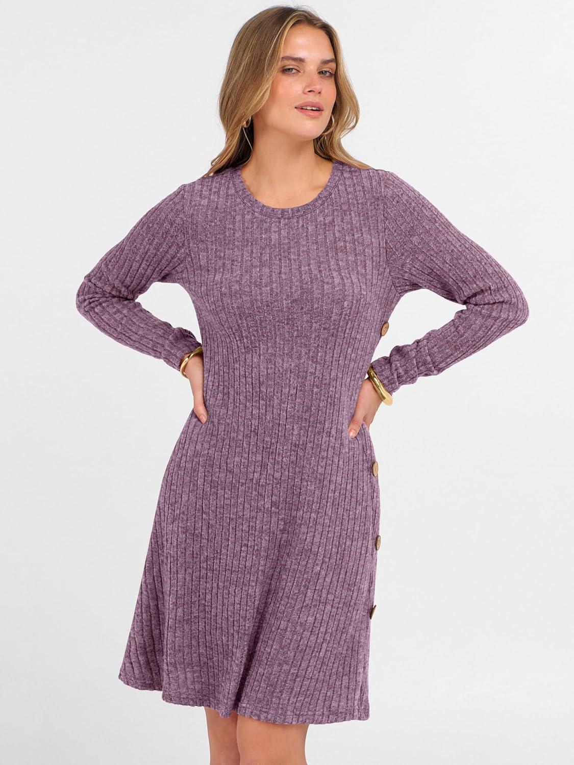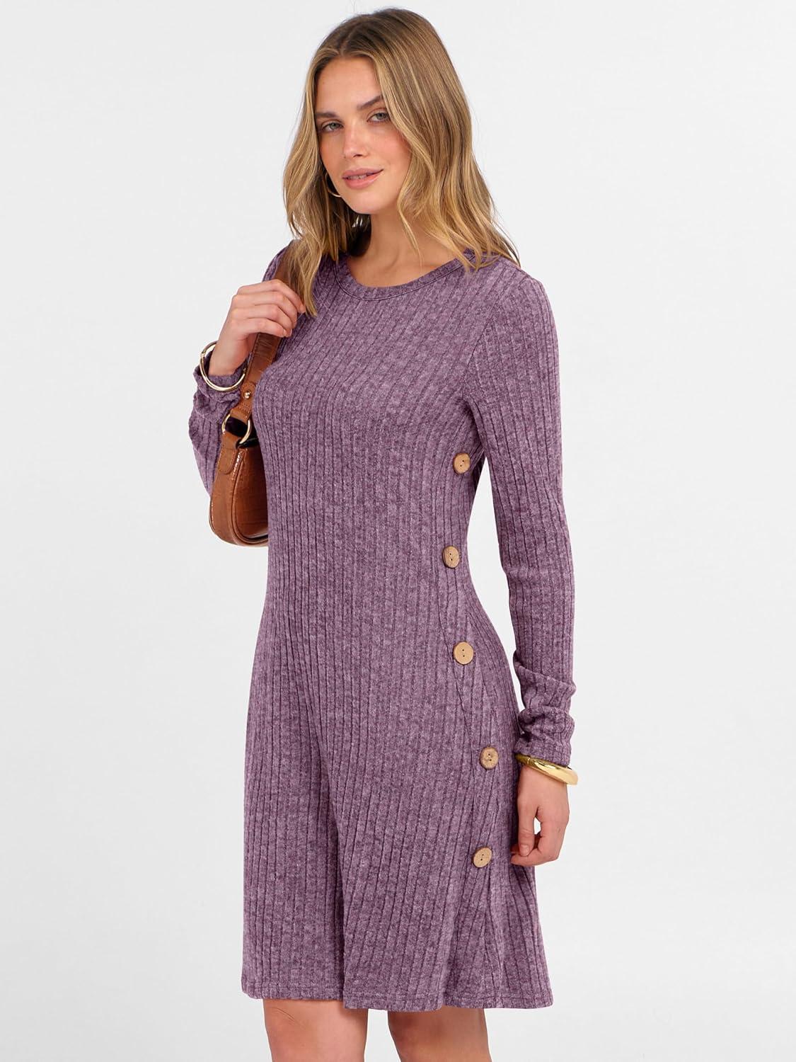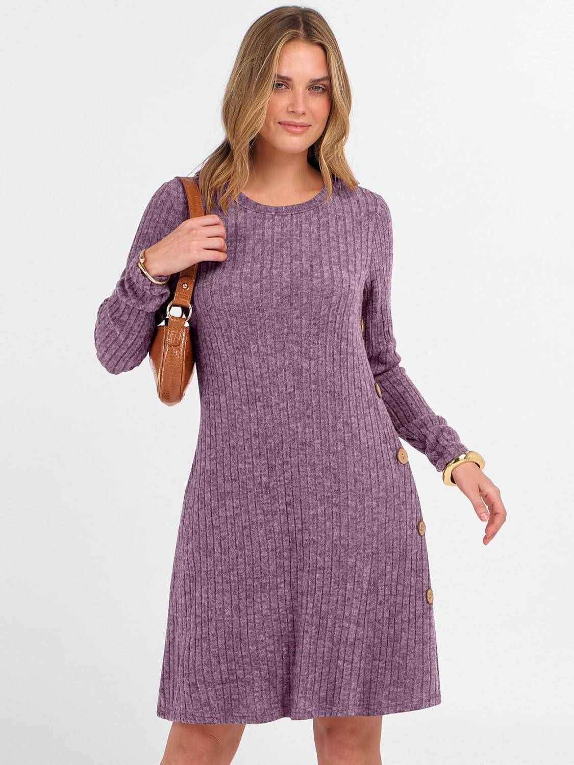 ANRABESS Womens Long Sleeve Ribbed Knit Sweater Dresses 2025 Fall Winter Casual Lounge Short Tunic Dress with Pockets Buttons(Purple Mauve)