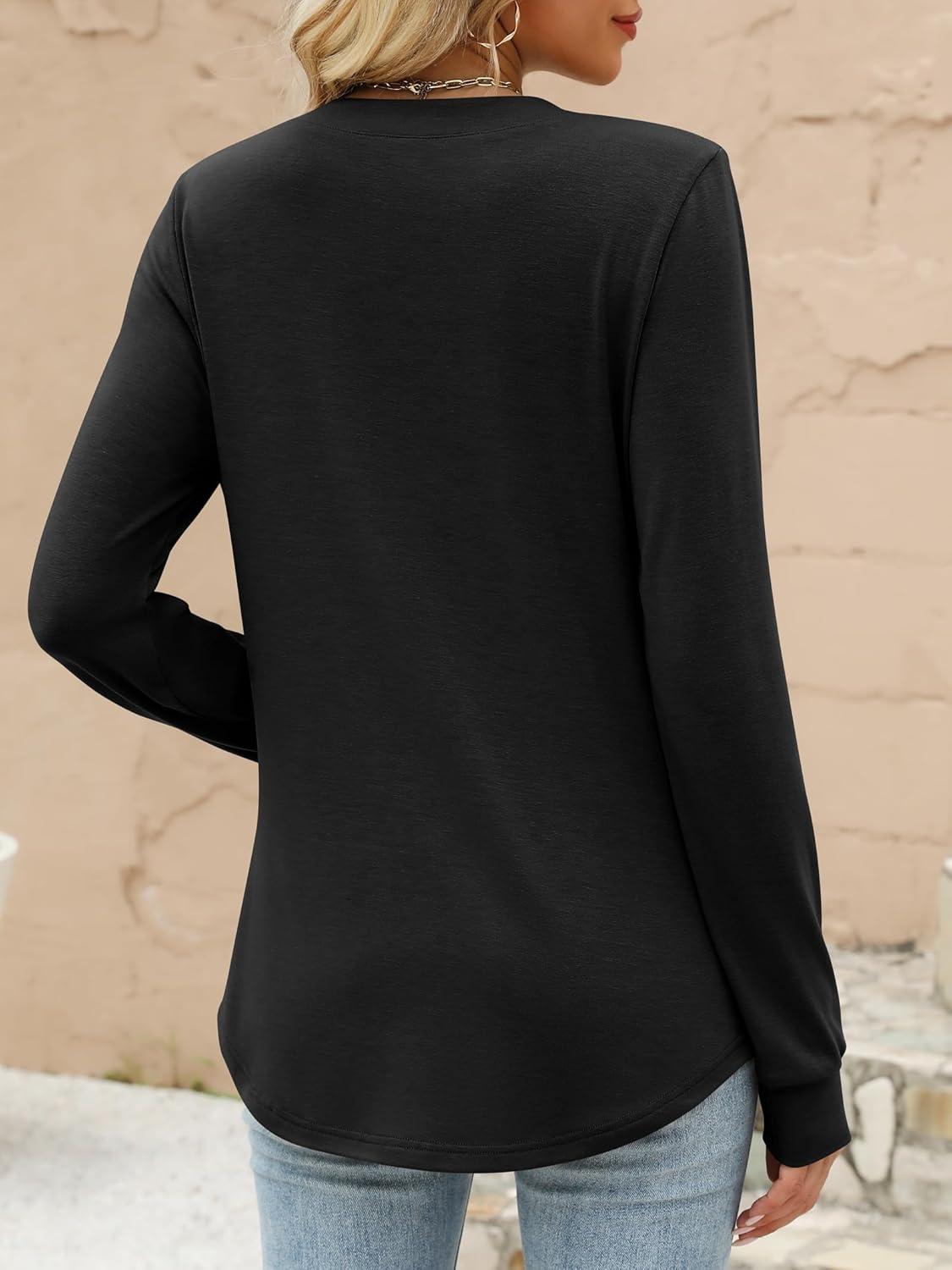 ANRABESS Women's Long Sleeve Shirts 2025 Fall Henley Business Casual Tops Cute T-Shirts Work Blouses Outfits Vacation Clothes(Black)