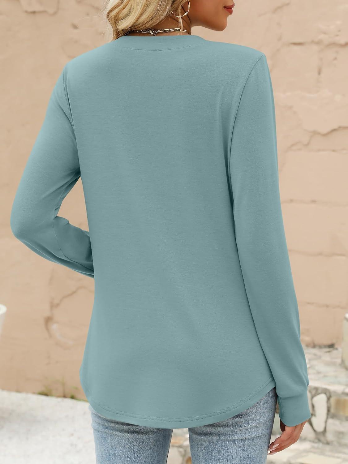 ANRABESS Women's Long Sleeve Shirts 2025 Fall Henley Business Casual Tops Cute T-Shirts Work Blouses Outfits Vacation Clothes(Cadet Blue)
