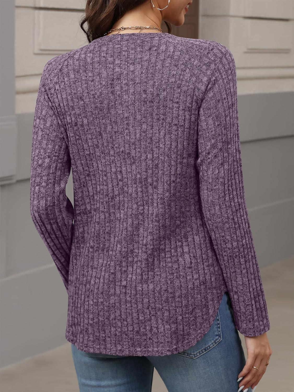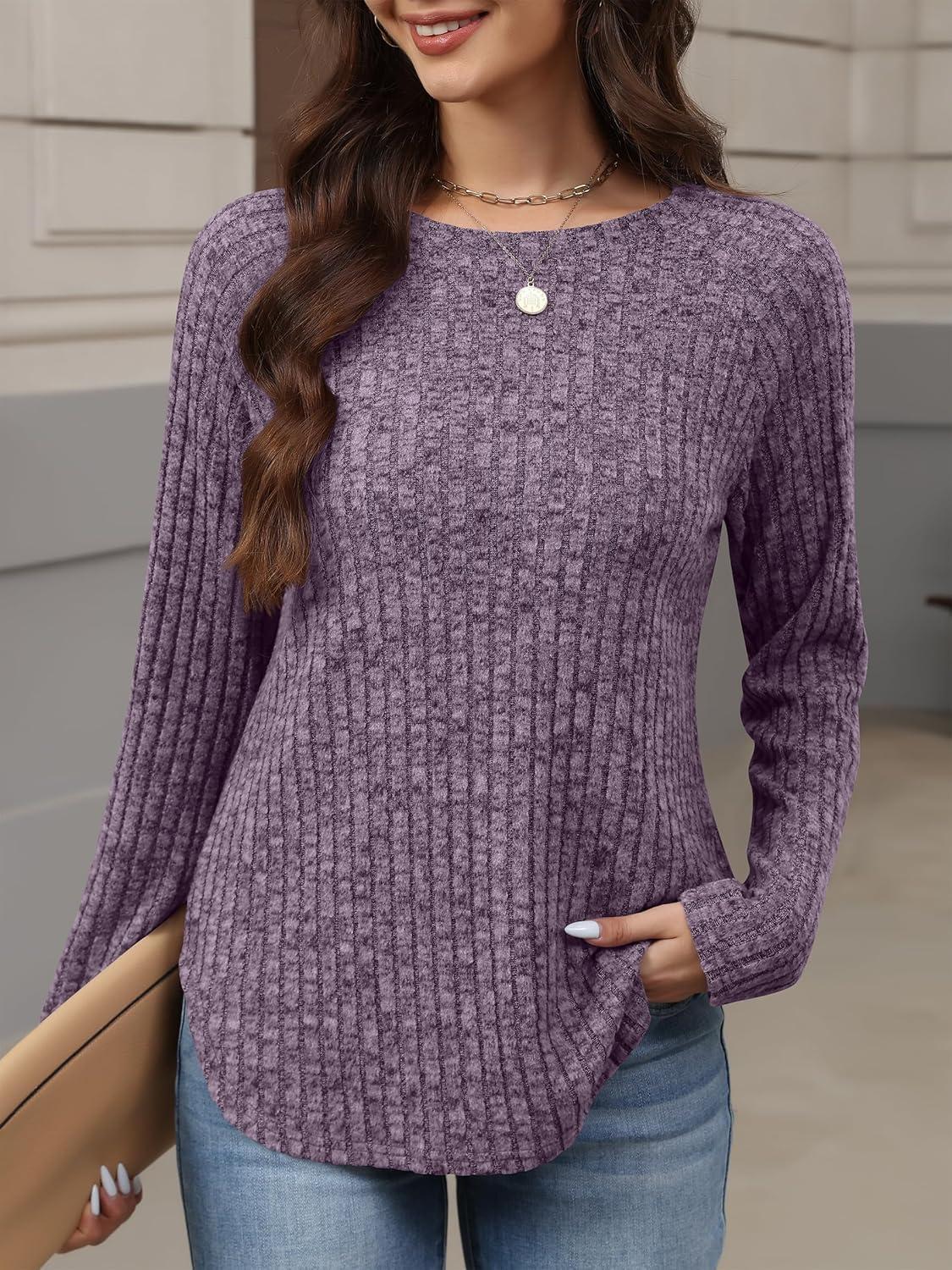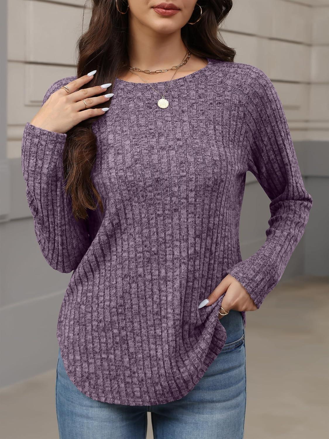 ANRABESS Womens Long Sleeve Shirts 2025 Fall Lightweight Sweater Tunic Tops Crewneck Casual Loose Fit Work Travel Outfits(Purple)