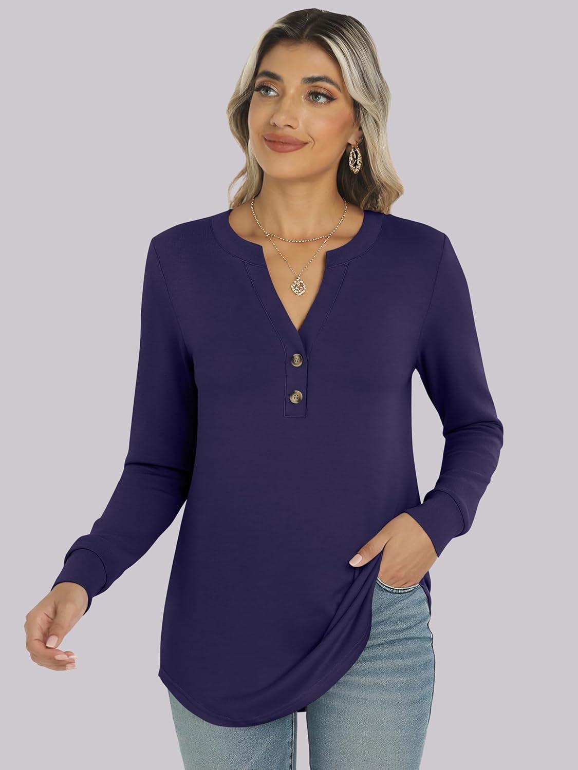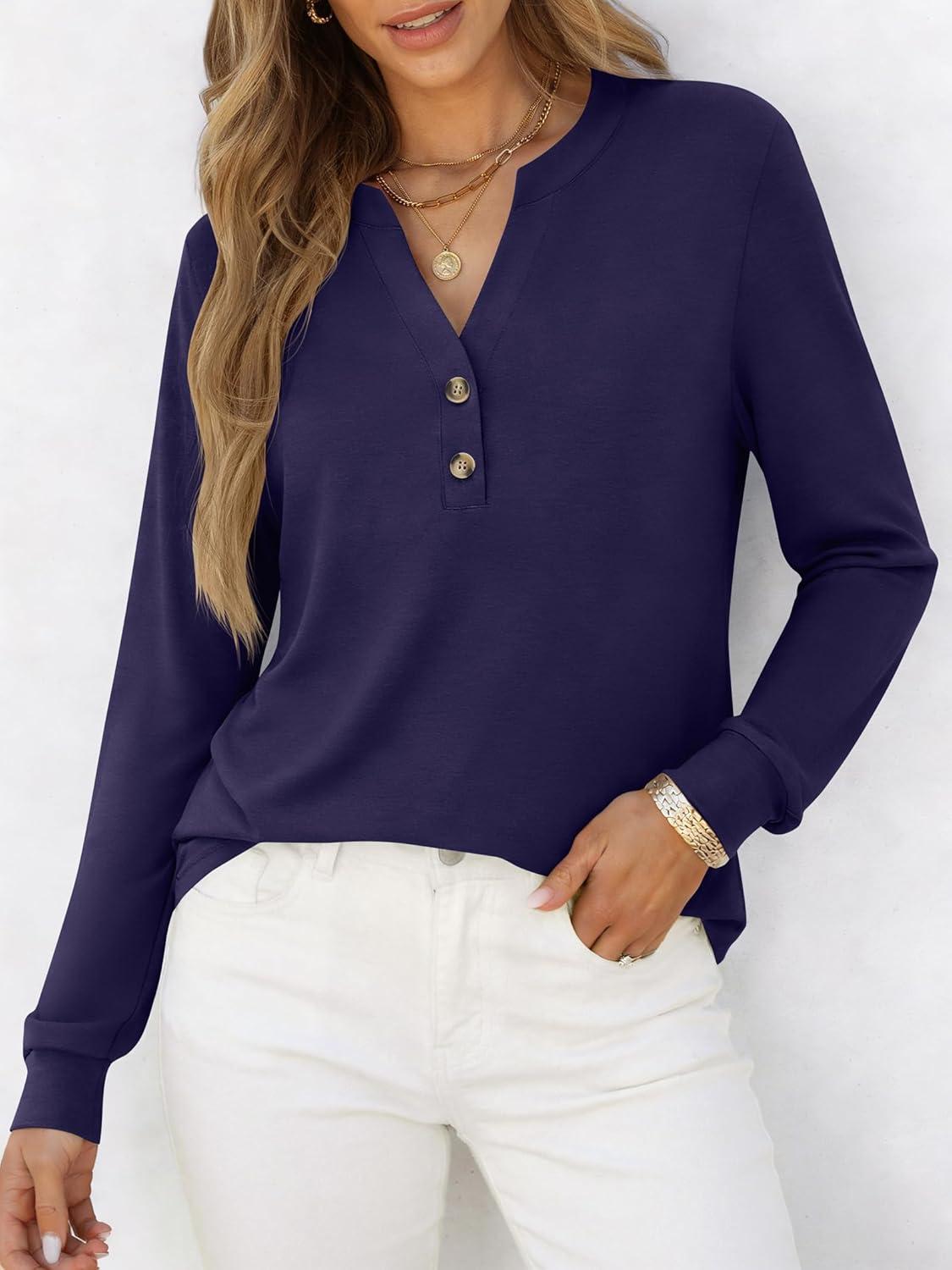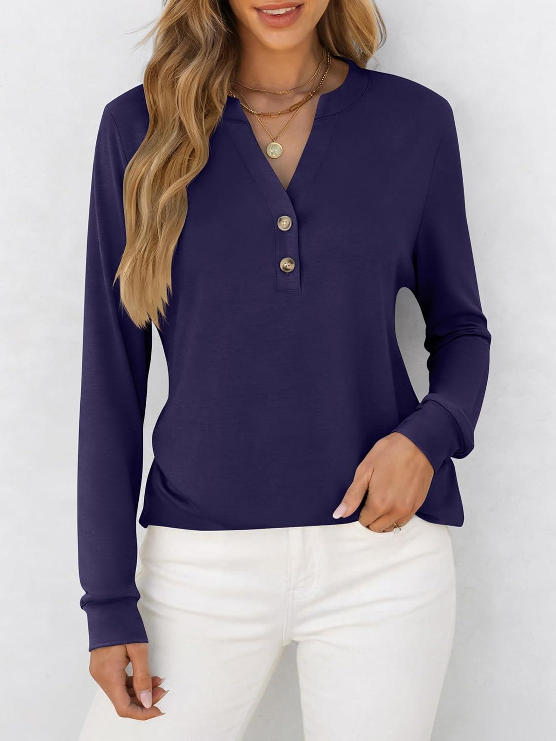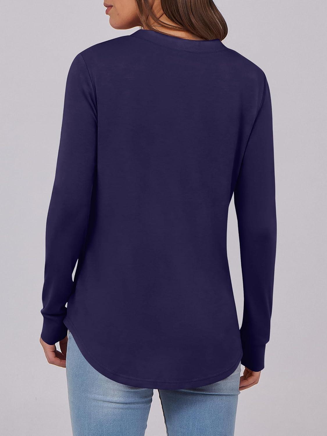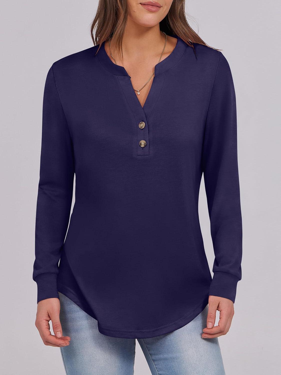 ANRABESS Women's Long Sleeve Shirts Henley Tops Dressy Casual Blouse Trendy 2025 Fall Clothes Spring Vacation Outfits(Navy Blue)