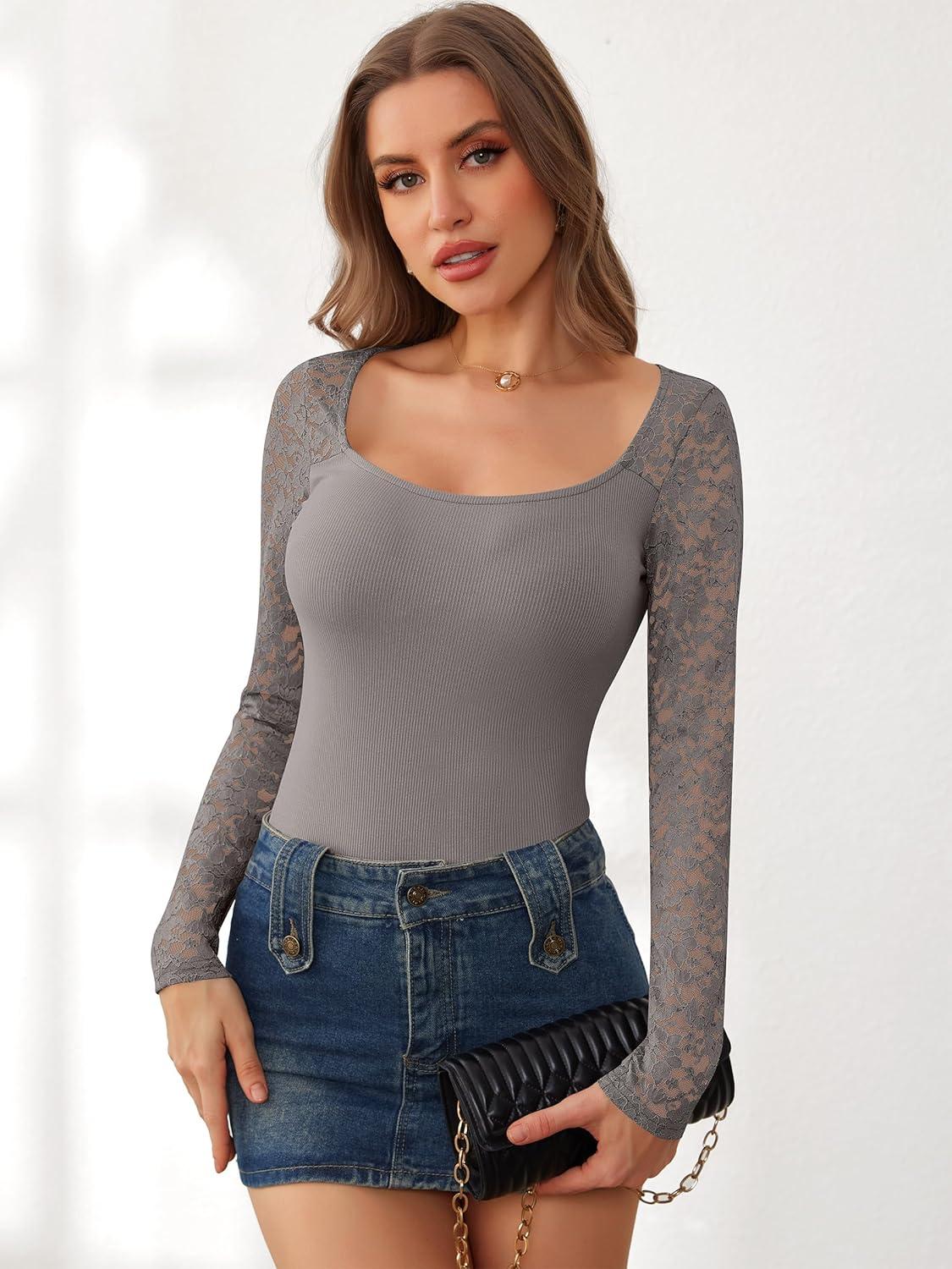 imageANRABESS Womens Long Sleeve Shirts Scoop Neck Lace Going Out Tops Slim Fit Rib Knit Casual Blouses 2025 Fall Fashion OutfitsDeep Green