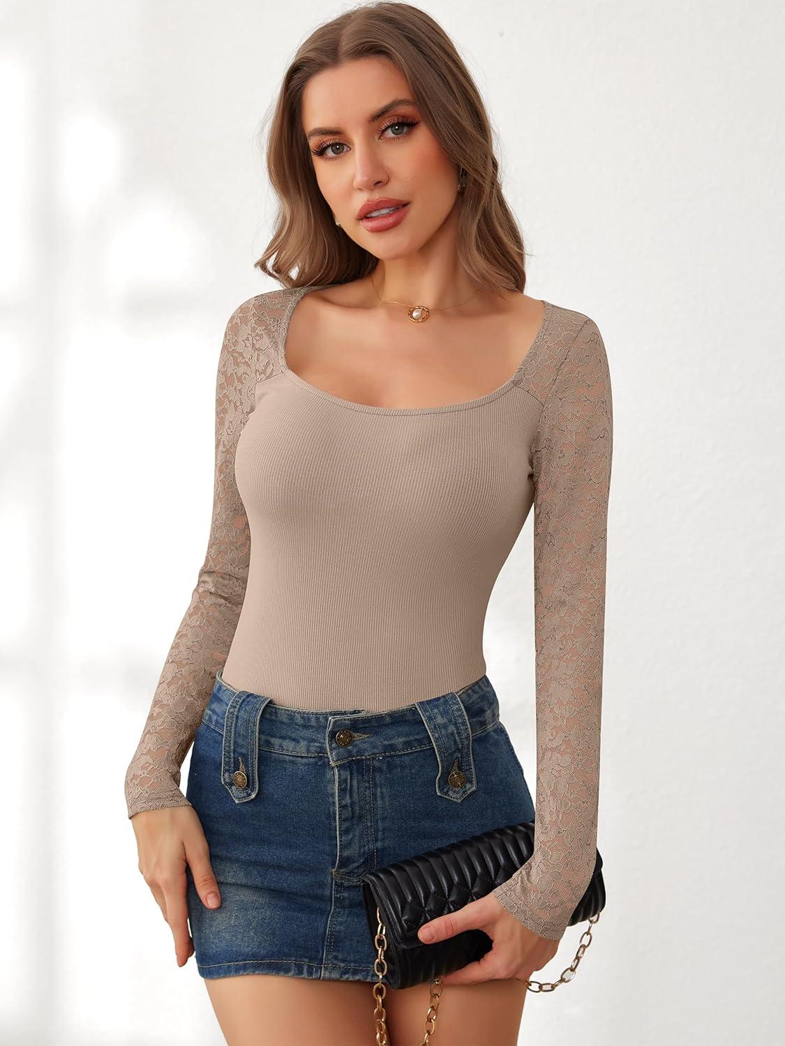 imageANRABESS Womens Long Sleeve Shirts Scoop Neck Lace Going Out Tops Slim Fit Rib Knit Casual Blouses 2025 Fall Fashion OutfitsLight Camel