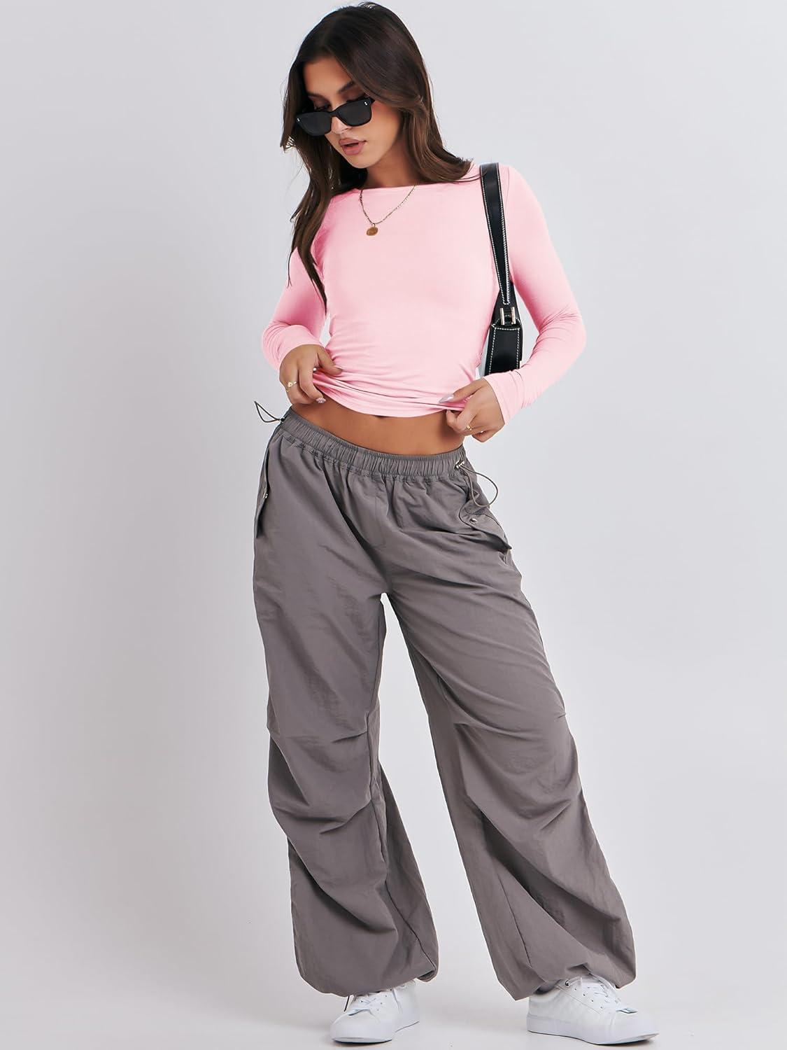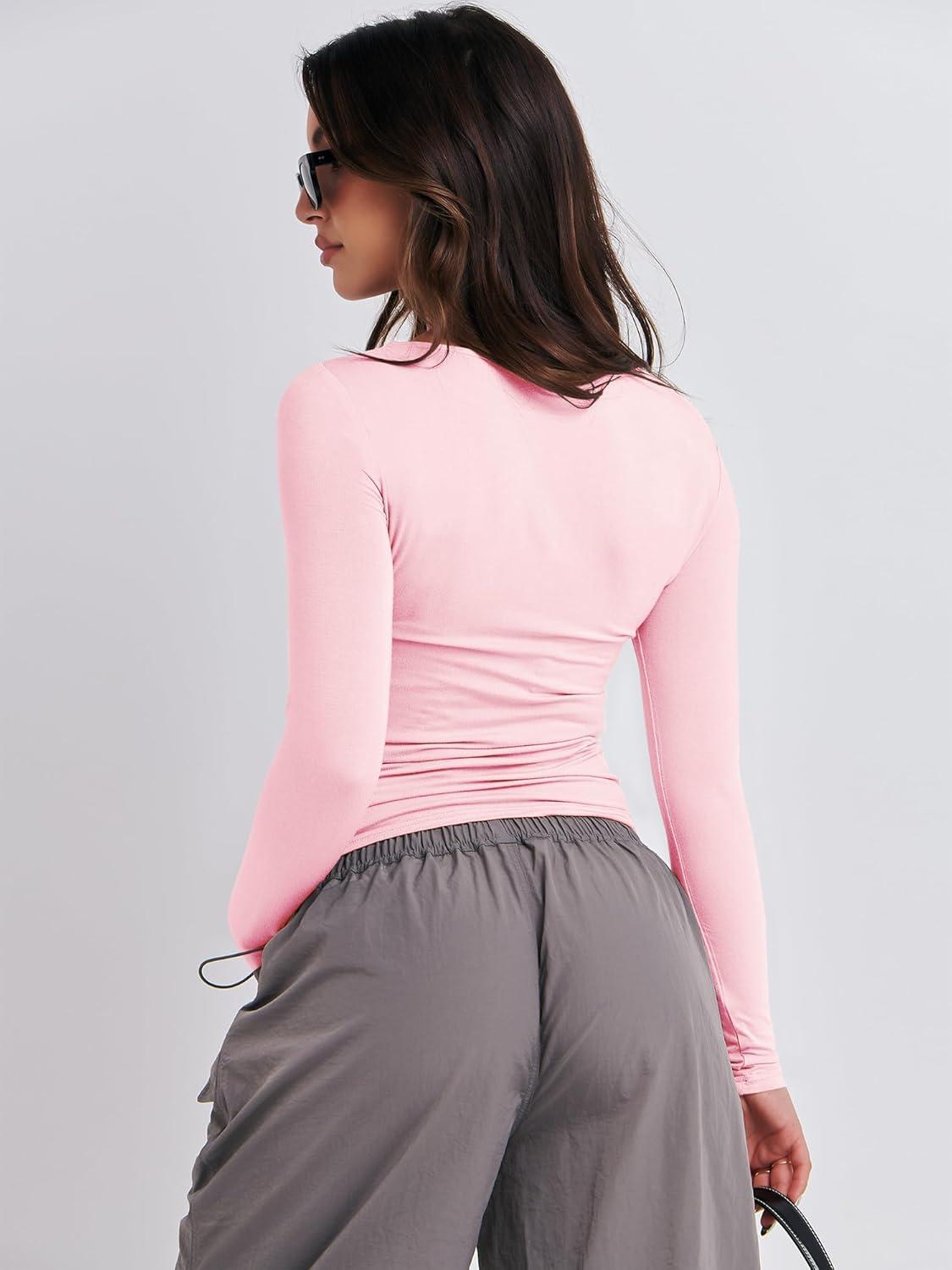 imageANRABESS Womens Long Sleeve Shirts Tight Fitted Going Out Crop Tops Crewneck Basic Tee Y2k Fall Outfits Teens Girls ClothesLight Pink