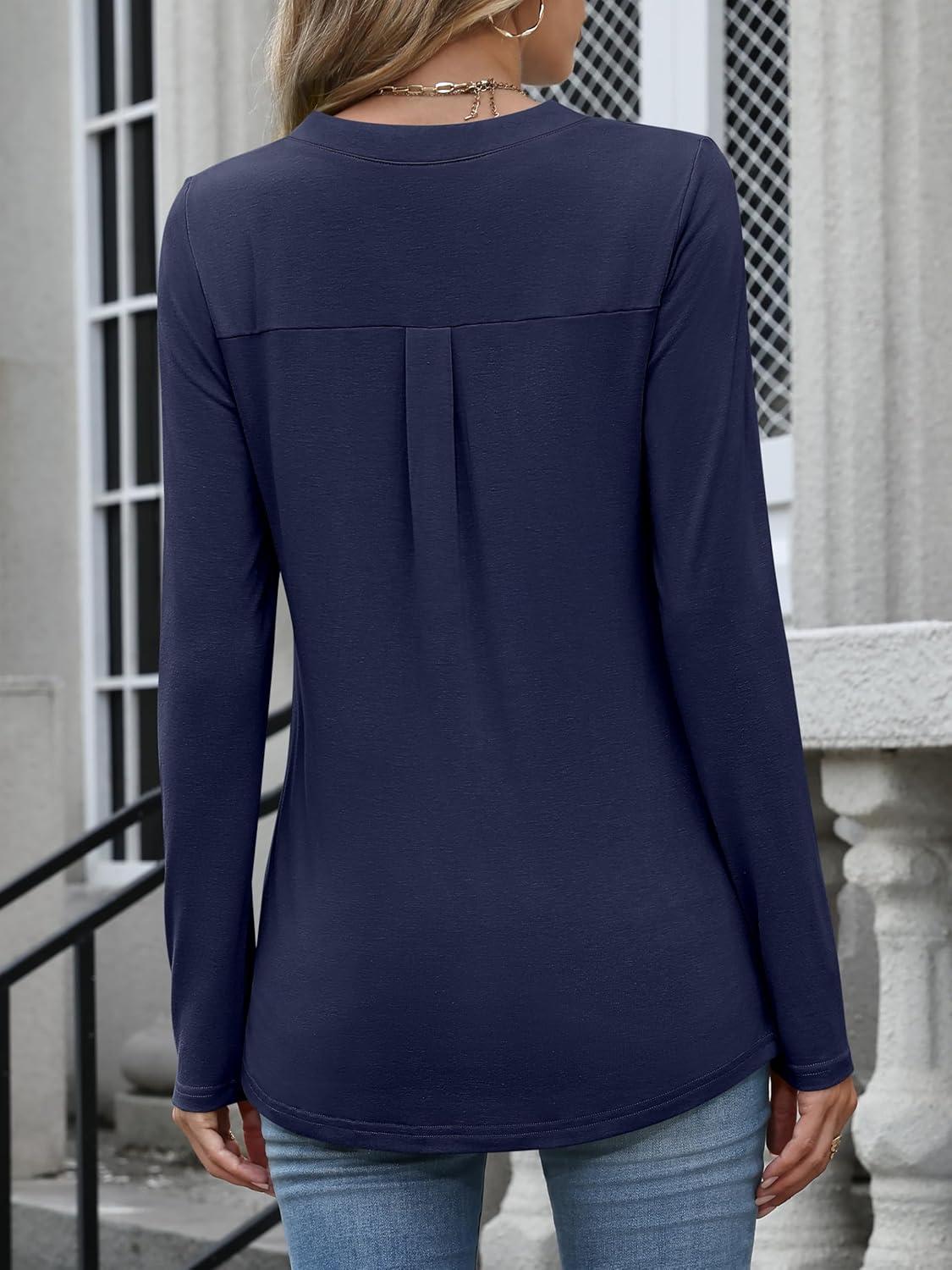 ANRABESS Womens Long Sleeve Shirts V Neck Dressy Casual Blouse Lightweight Tunic Tops 2025 Fall Outfits Trendy Clothes(Navy Blue)