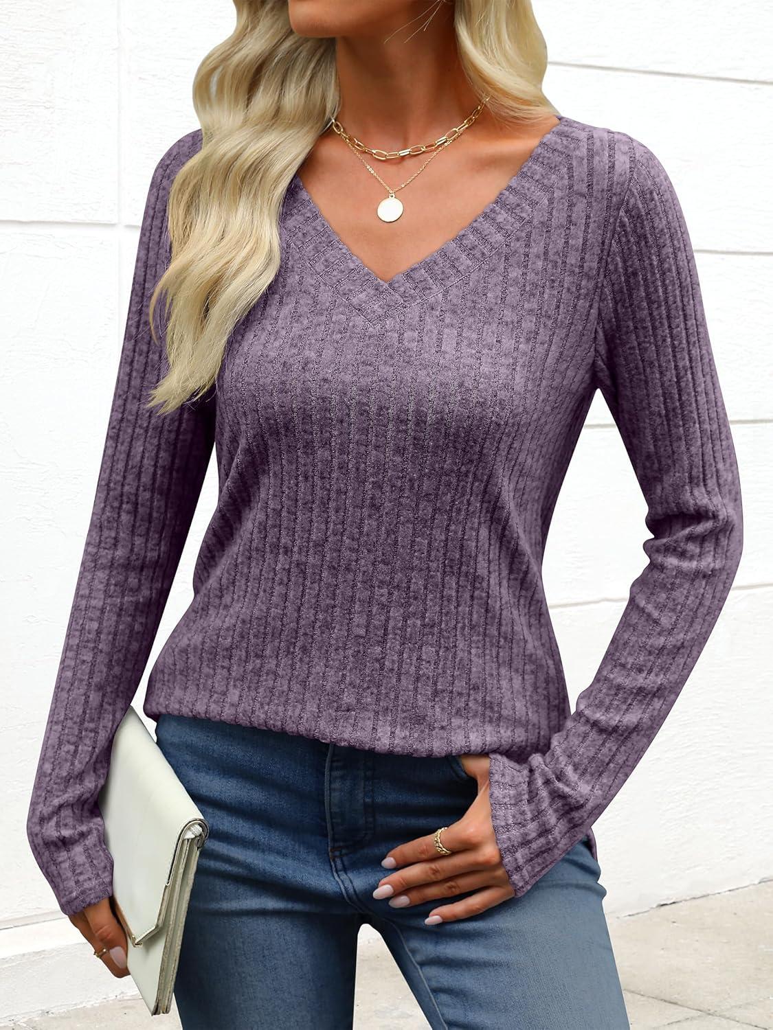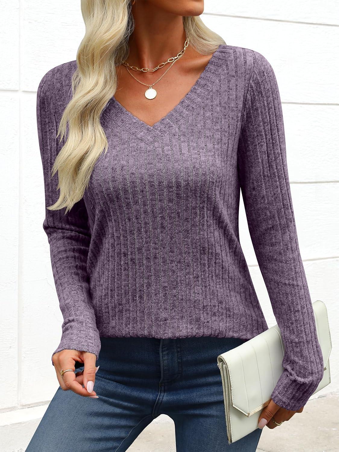 imageANRABESS Womens Long Sleeve Shirts V Neck Lightweight Sweater Tops 2025 Fall Dressy Casual Work Tunic BlousePurple