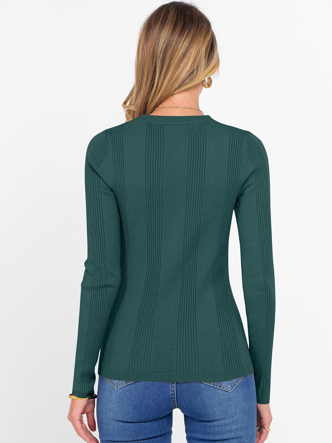 ANRABESS Women's Long Sleeve Slim Fit Crewneck Lightweight Sweaters 2025 Fall Winter Basic Fitted Rib Knit Pullover Tops(Dark Green)