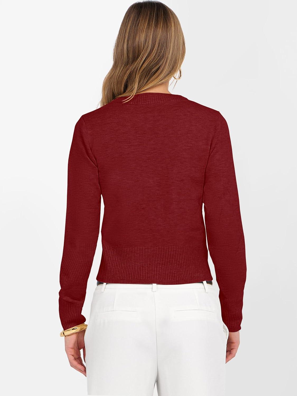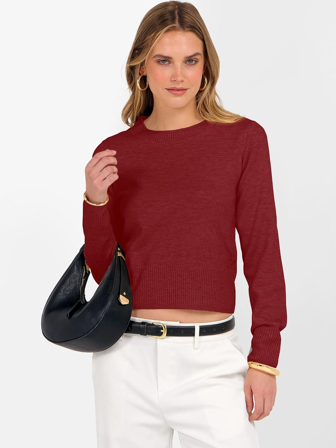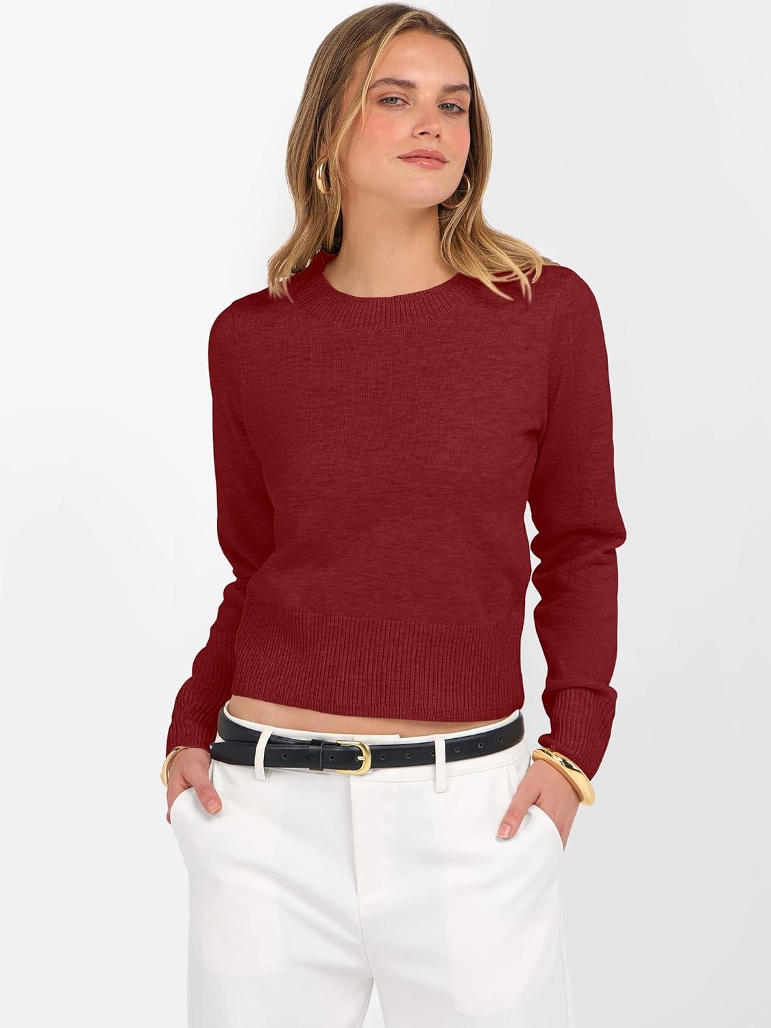 ANRABESS Women’s Long Sleeve Sweaters Cropped Crew Neck Business Casual Light Weight Sweater Tops Fall Fashion Clothes 2025(Brick Red)
