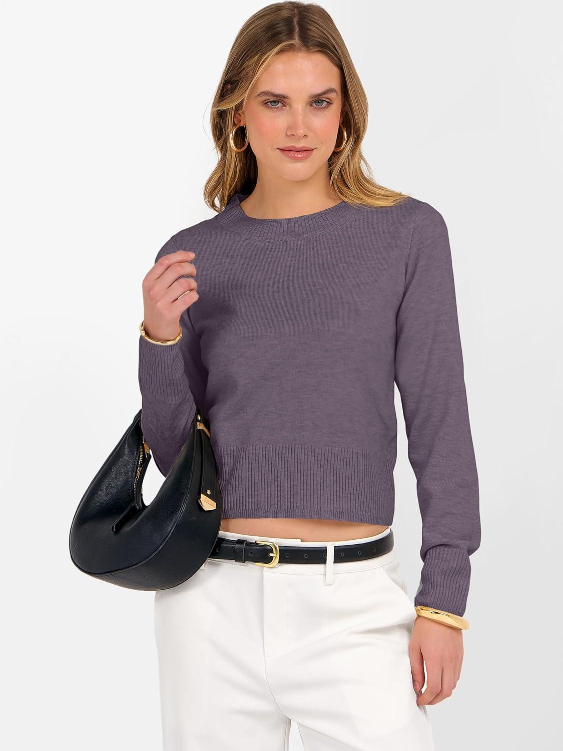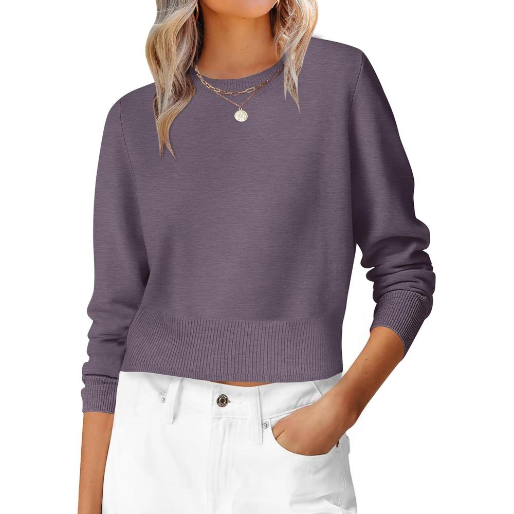 imageANRABESS Womens Long Sleeve Sweaters Cropped Crew Neck Business Casual Light Weight Sweater Tops Fall Fashion Clothes 2025Deep Purple