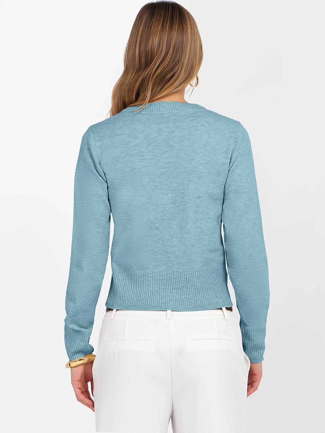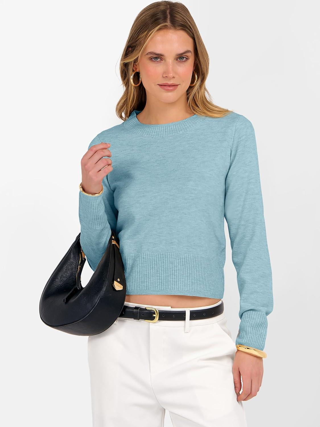 ANRABESS Women’s Long Sleeve Sweaters Cropped Crew Neck Business Casual Light Weight Sweater Tops Fall Fashion Clothes 2025(Light Blue)