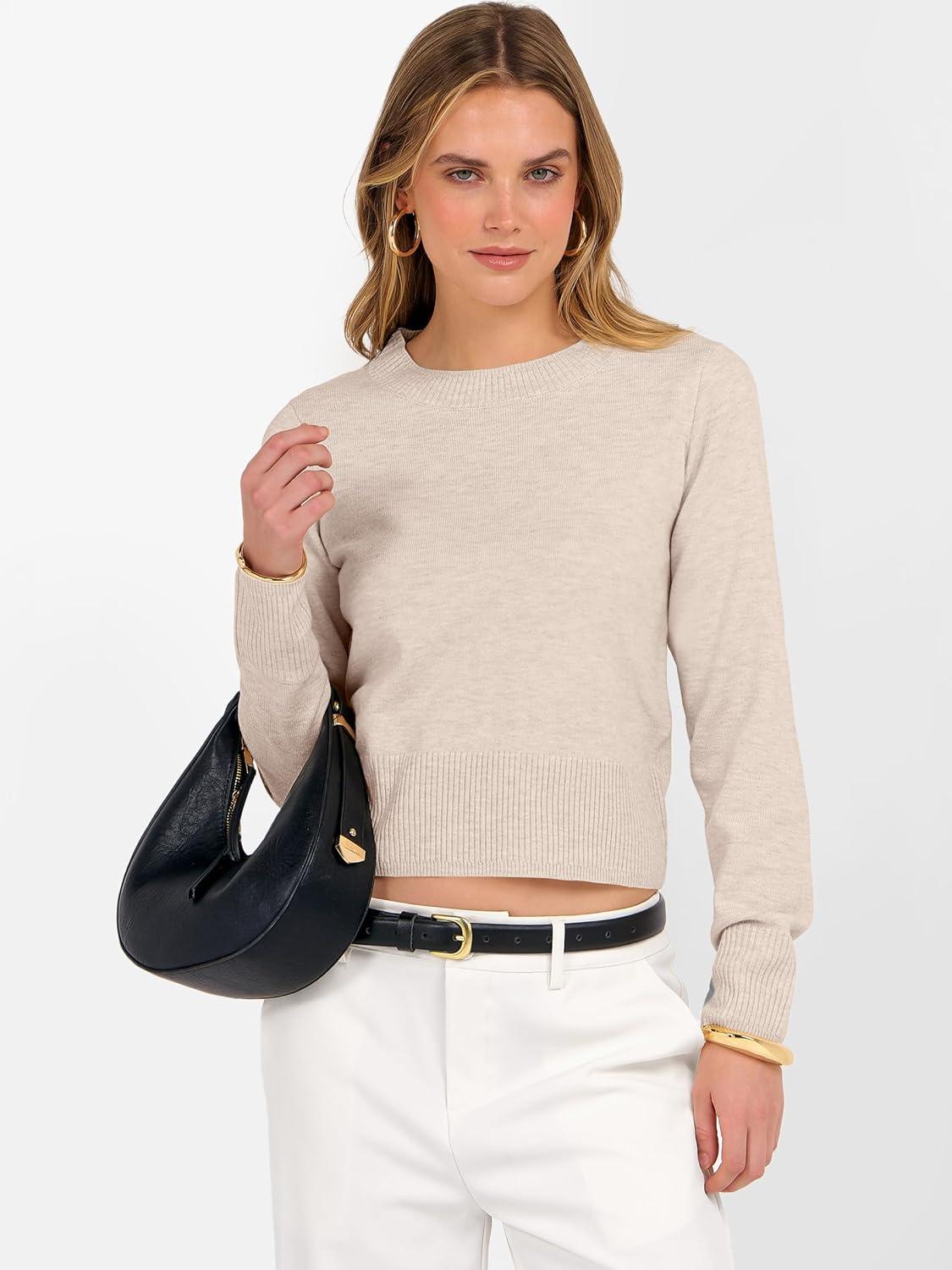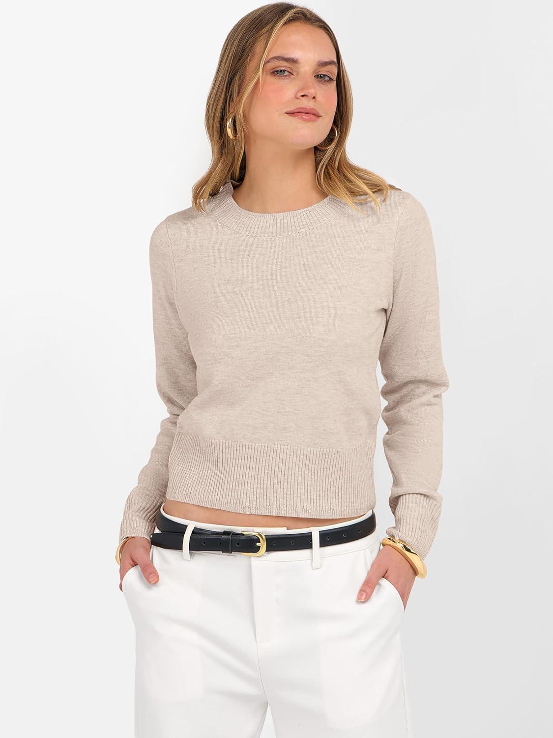 imageANRABESS Womens Long Sleeve Sweaters Cropped Crew Neck Business Casual Light Weight Sweater Tops Fall Fashion Clothes 2025White