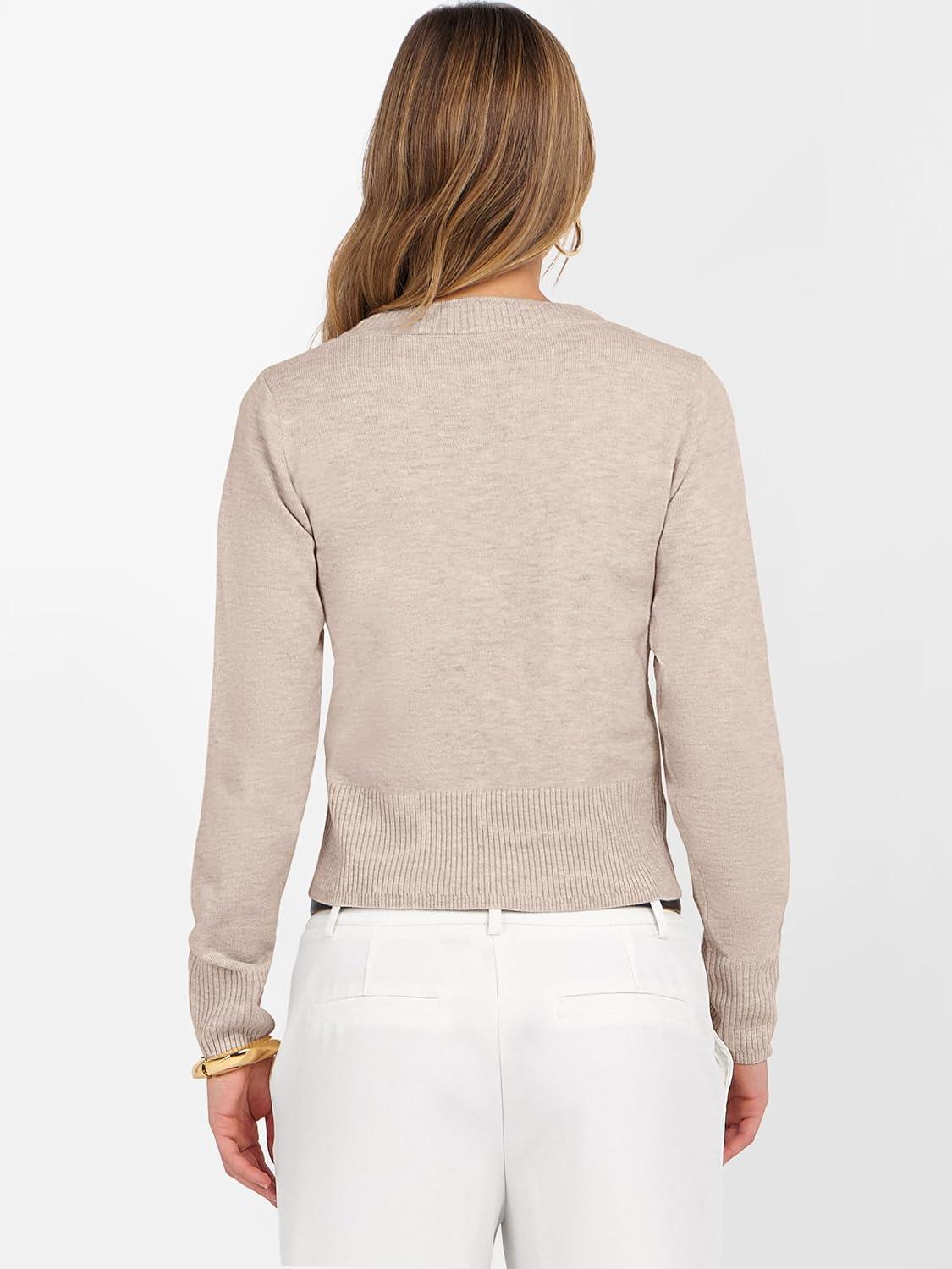 imageANRABESS Womens Long Sleeve Sweaters Cropped Crew Neck Business Casual Light Weight Sweater Tops Fall Fashion Clothes 2025Light Peach Almond