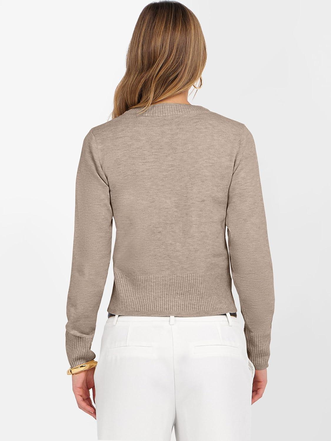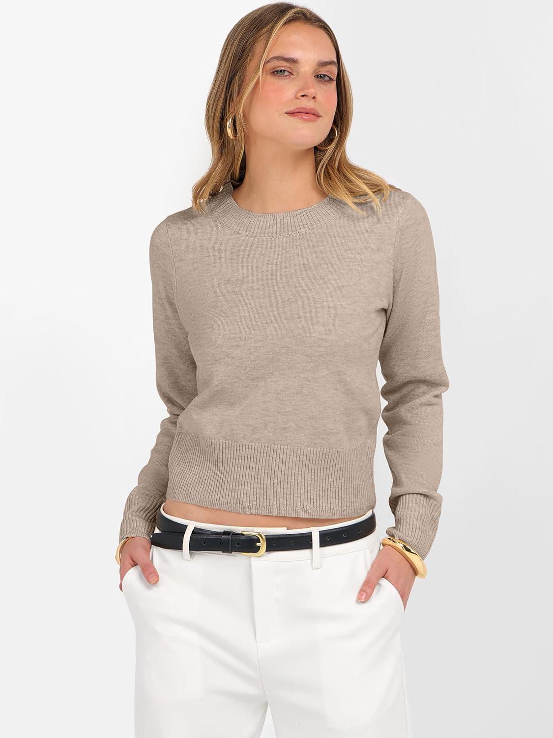 imageANRABESS Womens Long Sleeve Sweaters Cropped Crew Neck Business Casual Light Weight Sweater Tops Fall Fashion Clothes 2025Tan