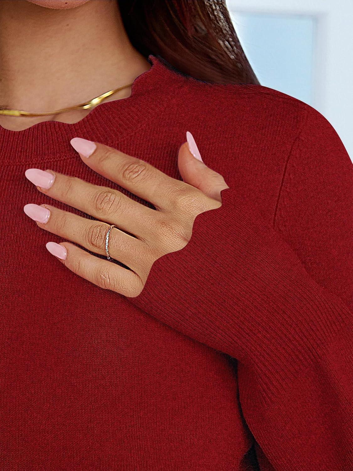 imageANRABESS Womens Long Sleeve Sweaters Loose Fit Lightweight Scalloped Knit Soft Dressy Pullover Tops 2025 Fall Casual OutfitsRed