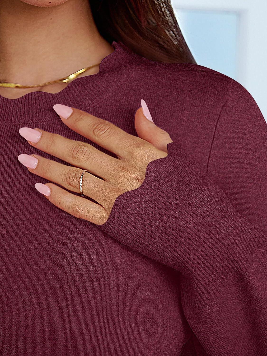 imageANRABESS Womens Long Sleeve Sweaters Loose Fit Lightweight Scalloped Knit Soft Dressy Pullover Tops 2025 Fall Casual OutfitsWine Red