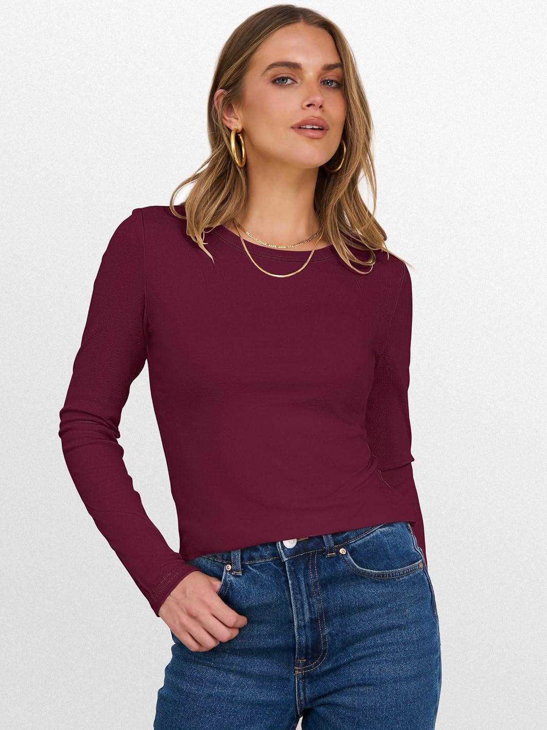 imageANRABESS Womens Long Sleeve Thermal Shirts Slim Fit Basic Tee Tops Warm Fleece Undershirts 2025 Fall Winter Layer OutfitsWine Red