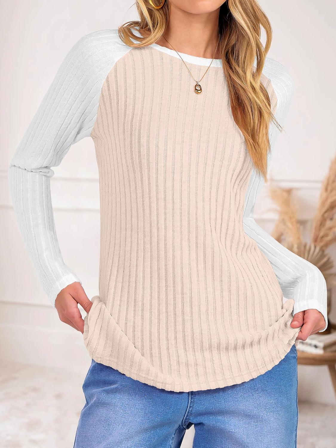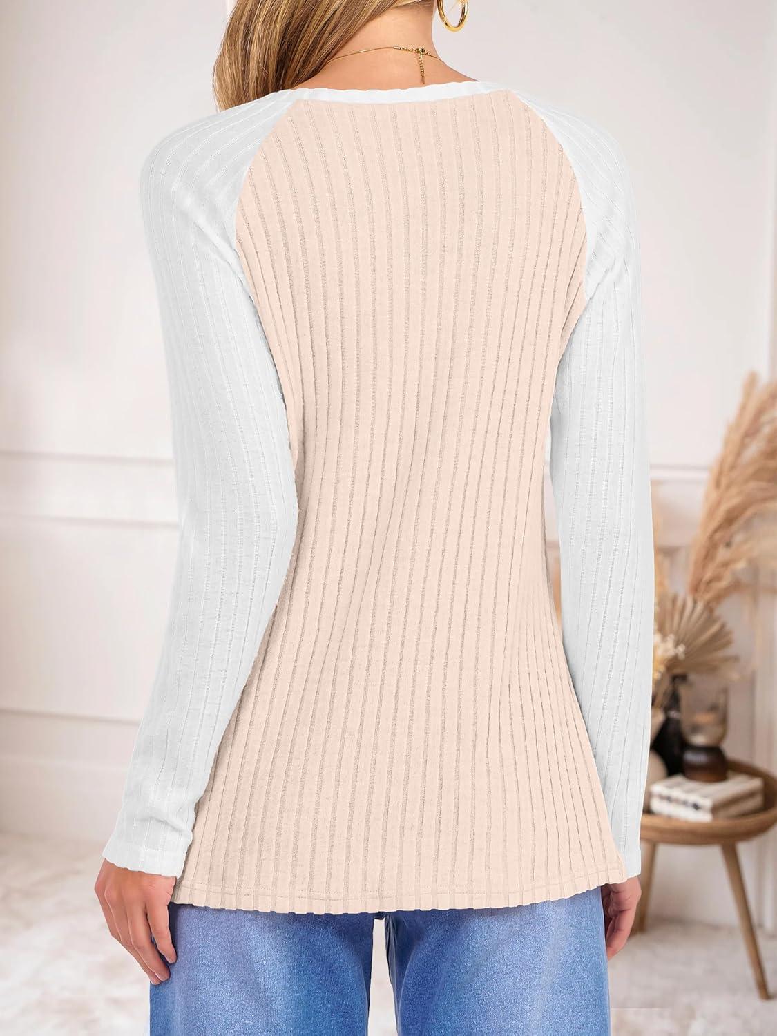 ANRABESS Womens Long Sleeve Tops Ribbed Knit Color Block Shirts Lightweight Sweaters 2025 Fall Outfits Blouses(Tan White)