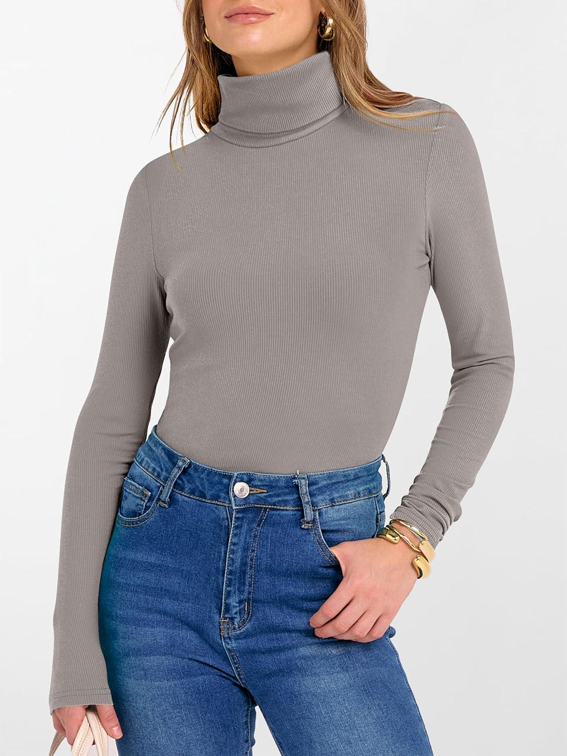 ANRABESS Women’s Long Sleeve Turtleneck Shirts Casual Ribbed Basic Tee Slim Soft Thermal Tops 2025 Fall Going Out Clothes(Grey)