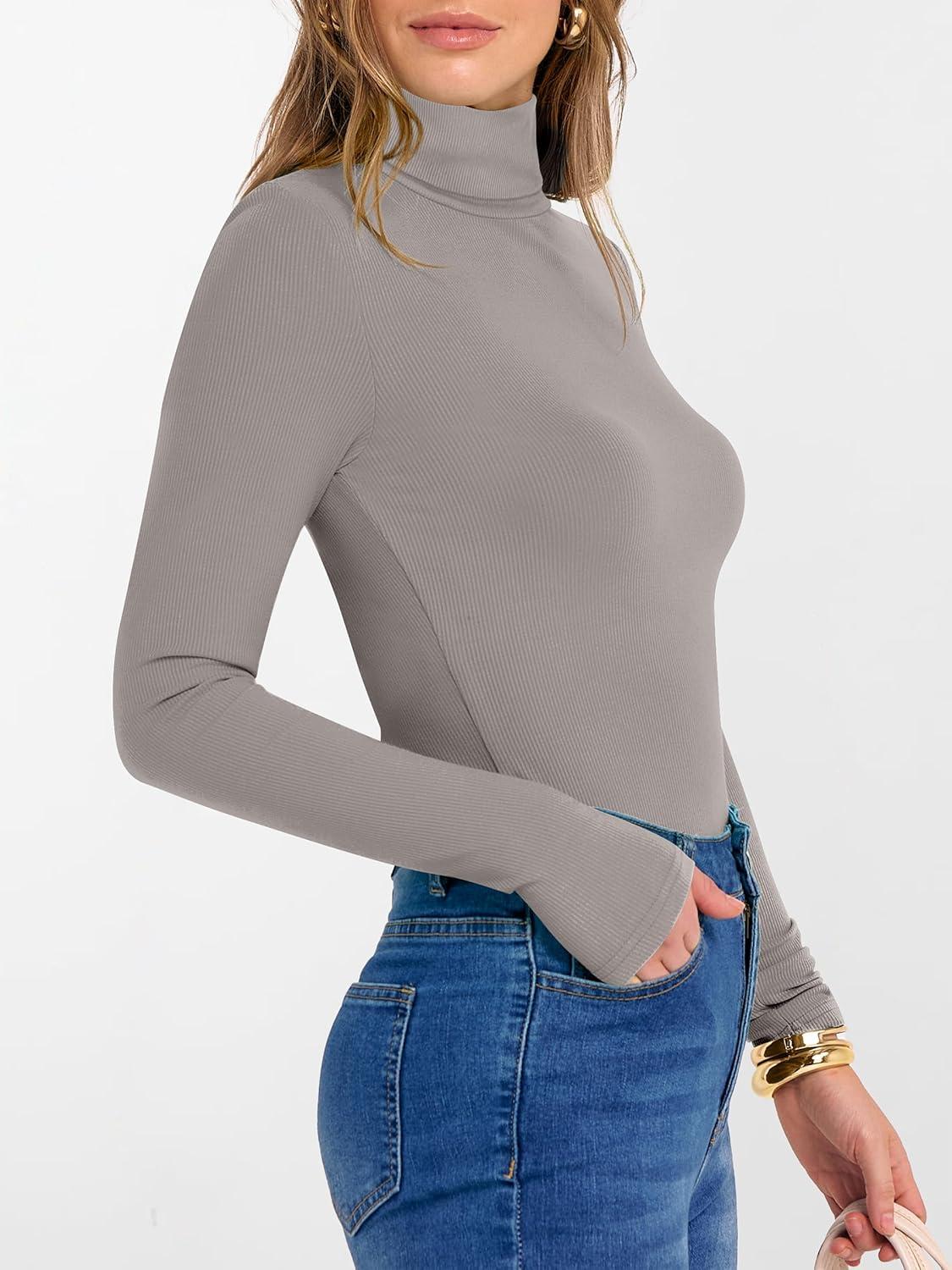 imageANRABESS Womens Long Sleeve Turtleneck Shirts Casual Ribbed Basic Tee Slim Soft Thermal Tops 2025 Fall Going Out ClothesGrey